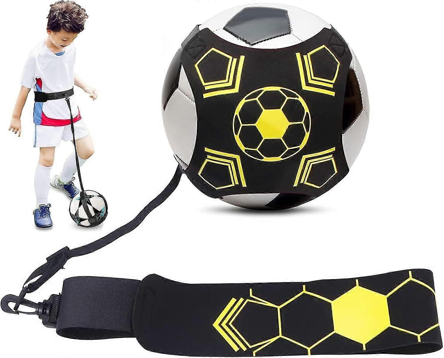 MATERIAL: The hands-free solo soccer trainer is made of neoprene with an integration design, which makes it durable and elastic to withstand thousands of kicks and kicks. ADJUSTABLE BELT AND STRETCH STRAP: The total length of the belt is 95cm/ 37.4inch, which is suitable for waist circumference (33"-39"). The total length of the elastic waistband is 160cm/5.25ft. It extends up to 18 feet. It provides great football training aids for kids and adults. PRACTICE BALL CONTROL ABILITY: - This football trainer frees your hands, maximizes the number of touches of ball, which increases your feel for passing, shooting, receiving, dribbling and overall footwork. Thus, it realizes the fast and repetitive ball touch training. DURABLE: use neoprene is durable enough to hold the ball firmly and high quality elastic nylon materials, the strong buckle, the points fins ensure long lasting durability of the training aid, ensuring you hit for a long time. Suitable for both young people, elders and Kids can use it in the home garden, have fun with the family and stay healthy. GET A MULTI-ASPECT TRAINING: Shooting, Passing, receiving, juggling, controlling the ball, taking throw-ins, you don't need to chase the ball anymore, which can save you more time to focus your energy on training to improve your ability to football. Product Description Product Description Unique all-round football trainer. Improve skills, confidence and physical fitness. Extend your football training to the limit without chasing the ball. Fits football sizes #3, # 4 and #5. You can practice almost anywhere to develop your skills, build your confidence and improve your shooting, passing, receiving, juggling, possession and throw-in. The ball sleeve and belt turn your football into a single kick and trainer. Applicable users: children and adults Package included: 1 * football training aids (excluding the ball)
