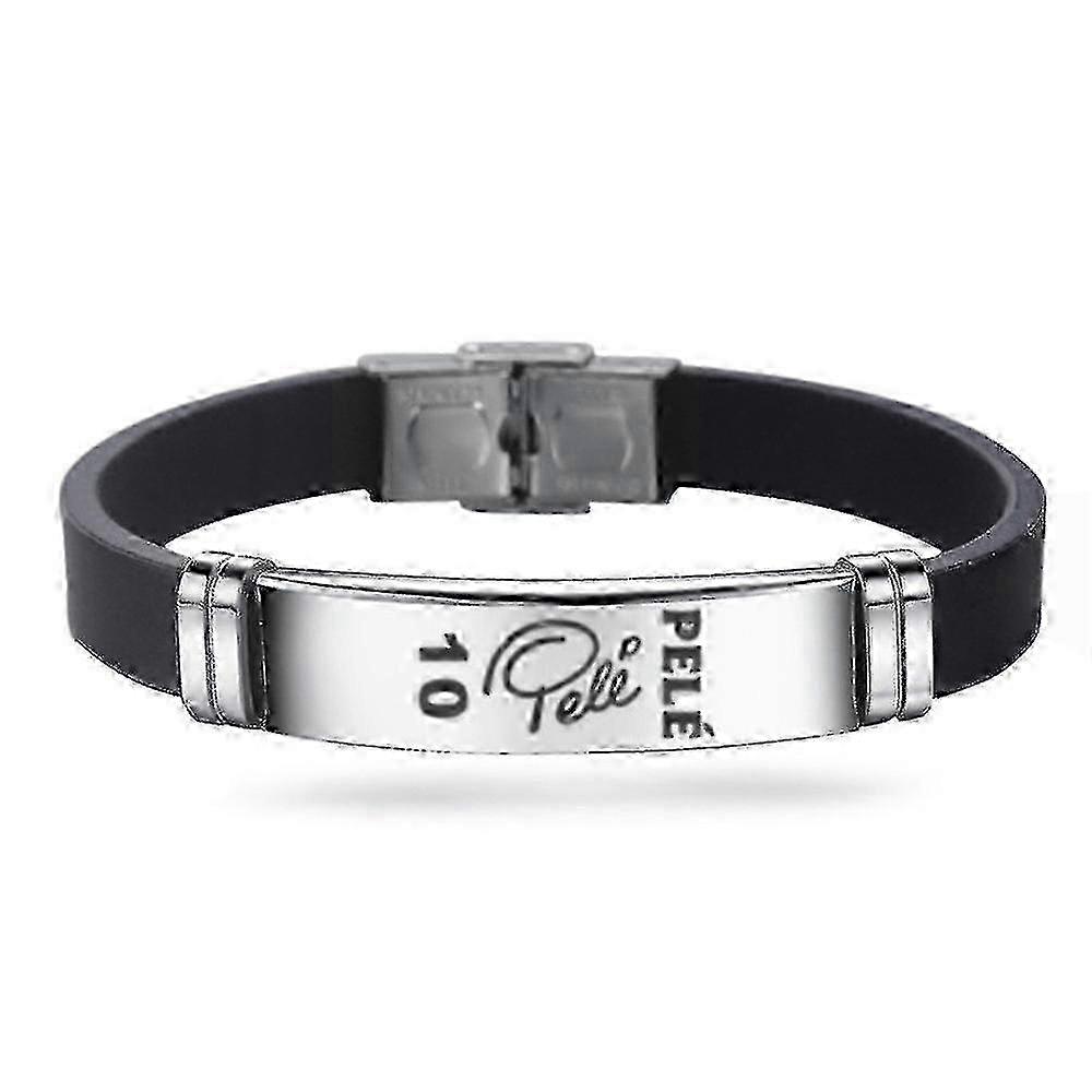 Football Player Bracelet Stainless Steel Engraved Adjustable Black Silicone Men Wristband Fans Souvenir Gifts