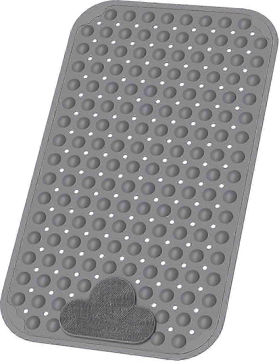 Non-Slip TPE Shower Mat with Foot Massage, 70x40cm, Anti-Mould, Gray