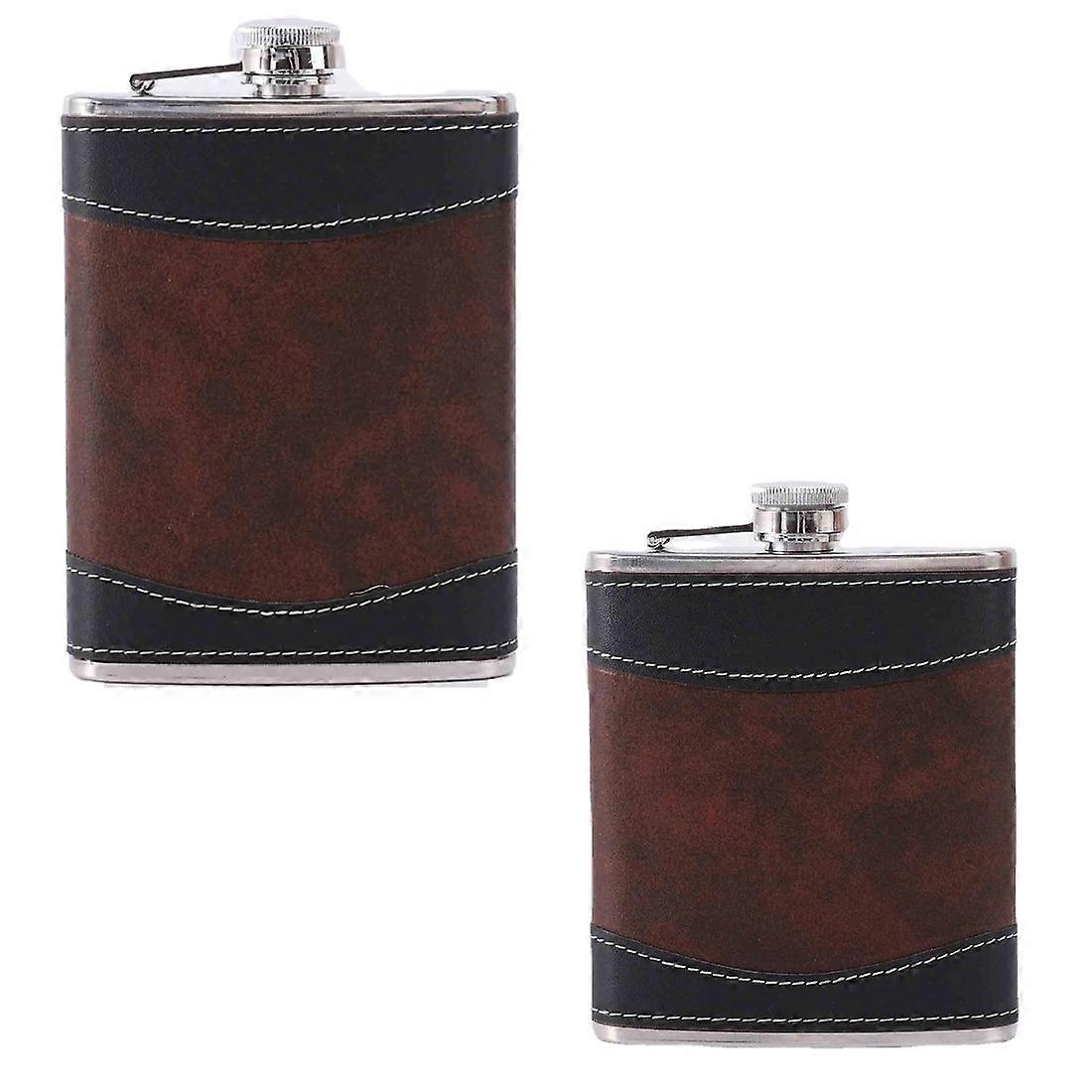 flagon Stainless steel flagon for outdoor and indoor use 6/7/8oz Small and portable suitable for gift -brown 2pcsD-