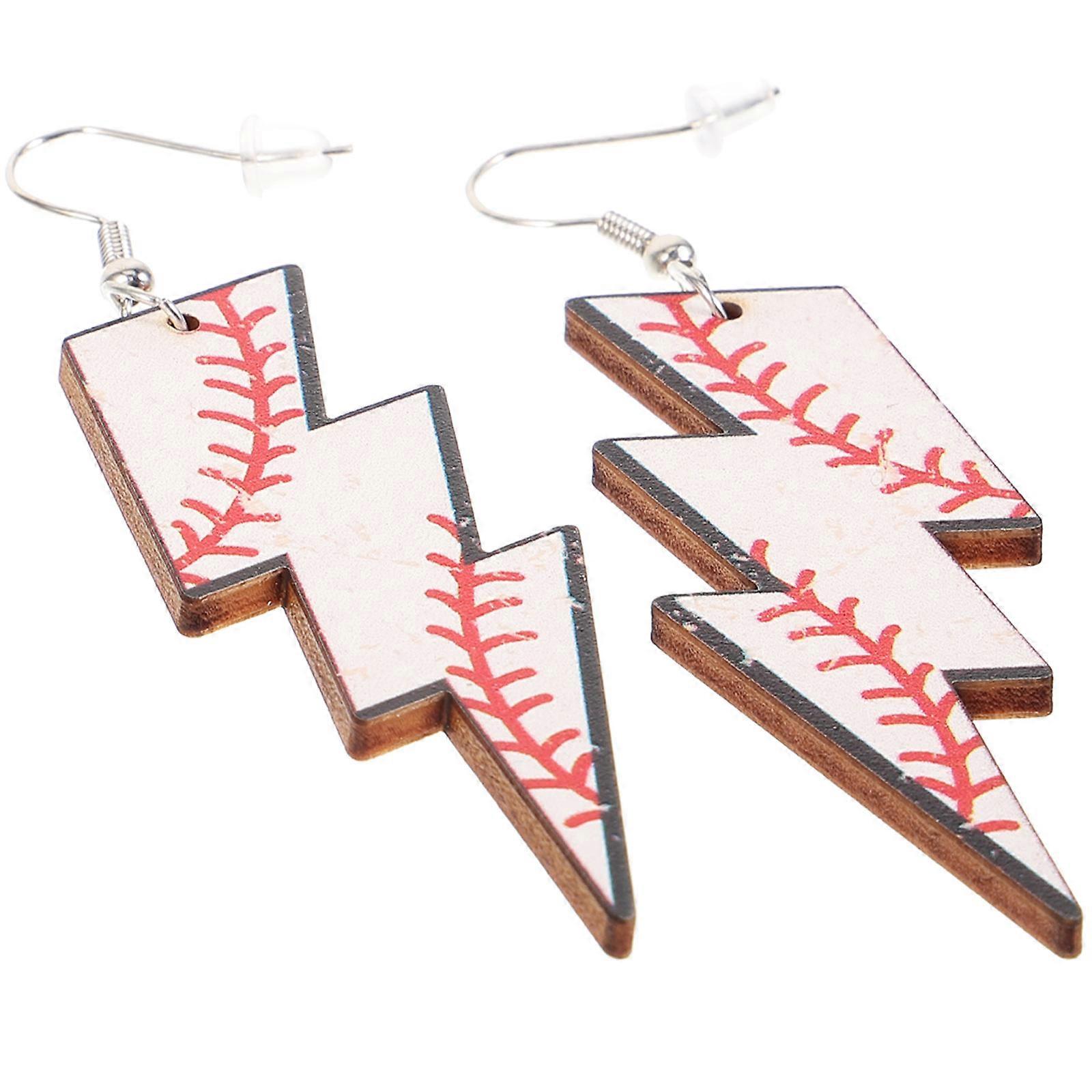 Baseball Pattern Earrings for Women with Flash Shape Design and Metal Wooden Material