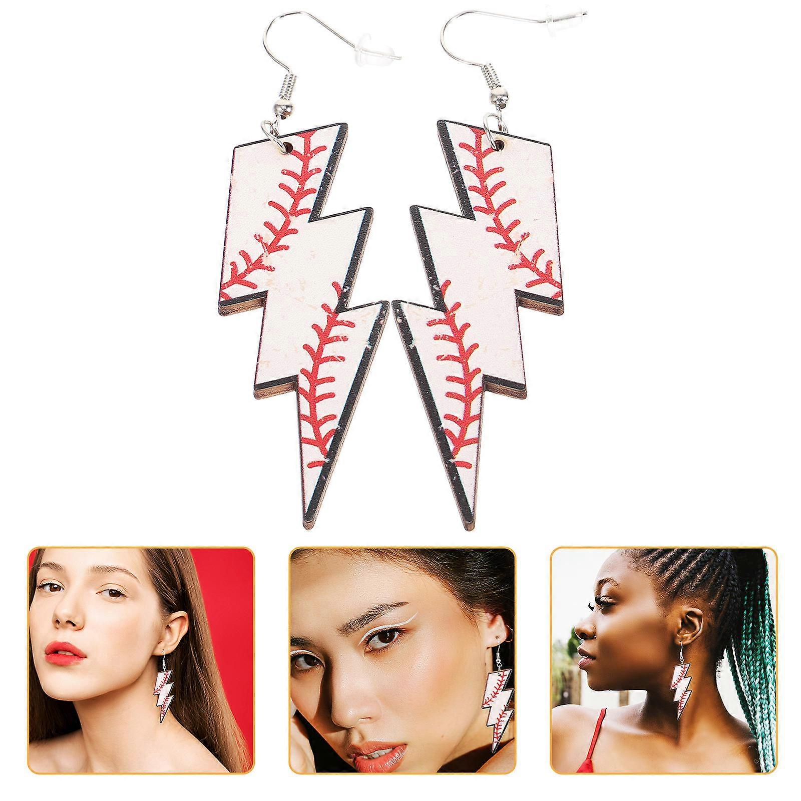 Baseball Pattern Earrings for Women with Flash Shape Design Metal and Wooden Lightweight