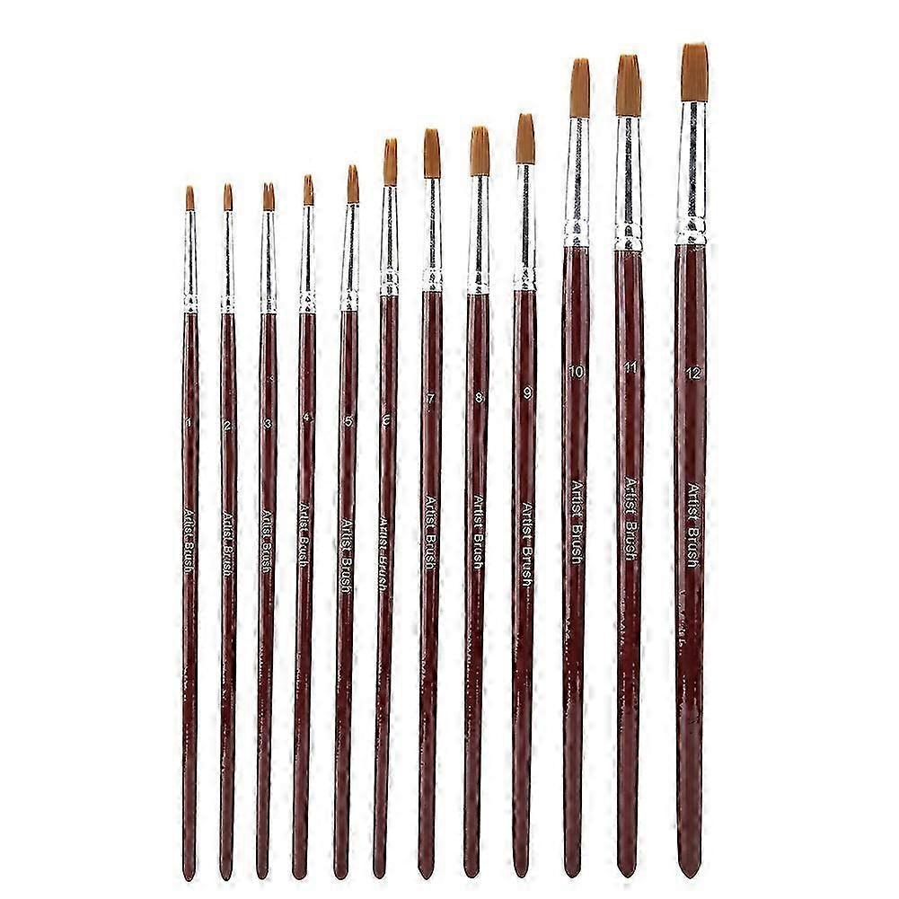 12Pcs Watercolor Paint Brush Set with Flat Tip - Nylon Hair Art Brushes for Painting & Drawing Supplies for Artists