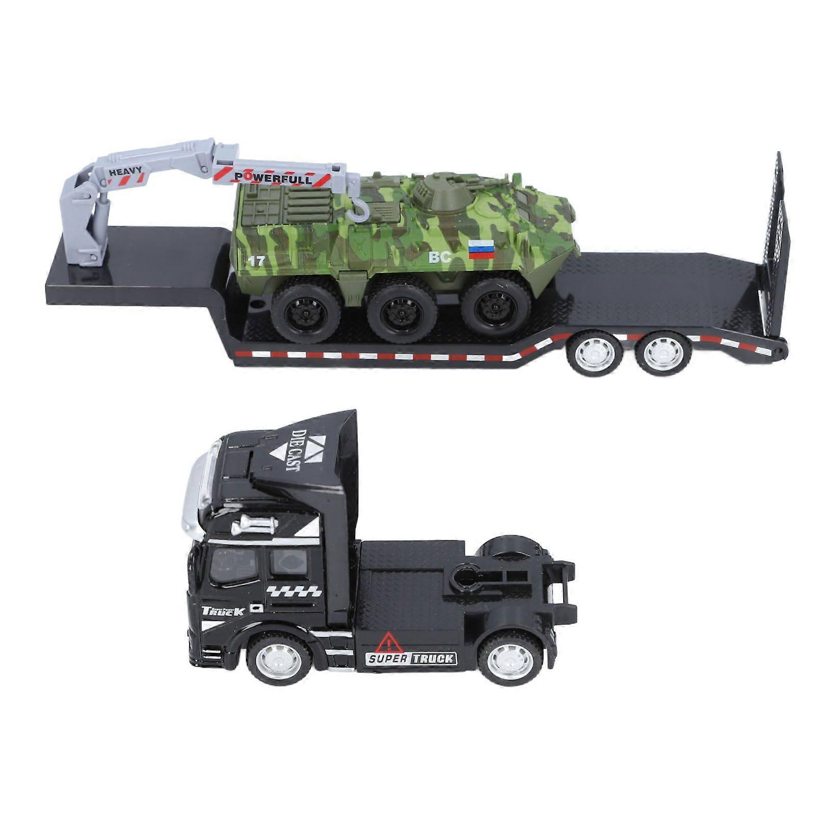 Flatbed Trailer Toy Simulation Detachable Collectible Military Flatbed Truck Model with Armored Car for Boys Green