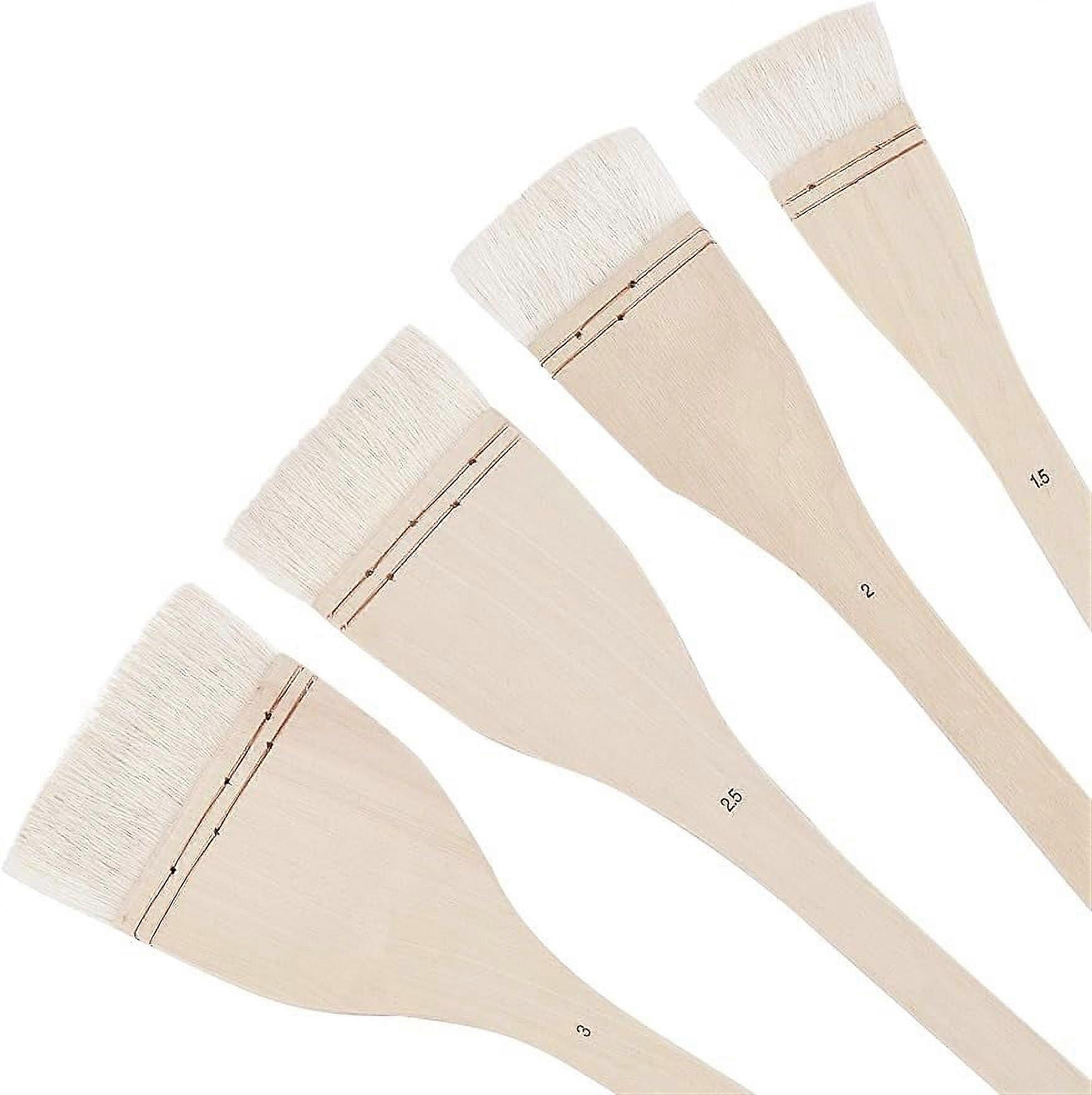 Flat Hake Brushes Sheep Hair Bristles Wash Large Area Flat Brush Set for Watercolor Wash Ceramic Size 1.5/2/2.5/3