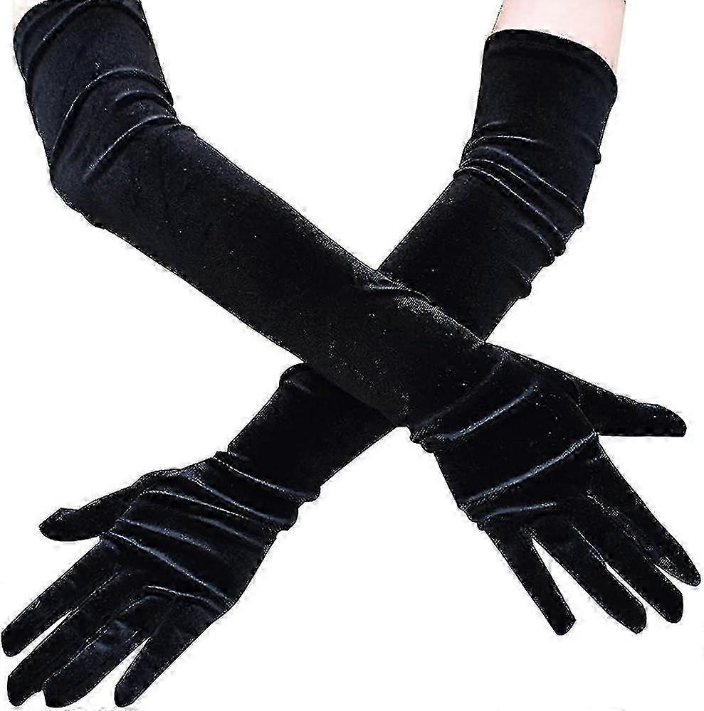 Flapper Style Black Velvet Gloves - 1920s Vintage Evening Party Gloves for Women