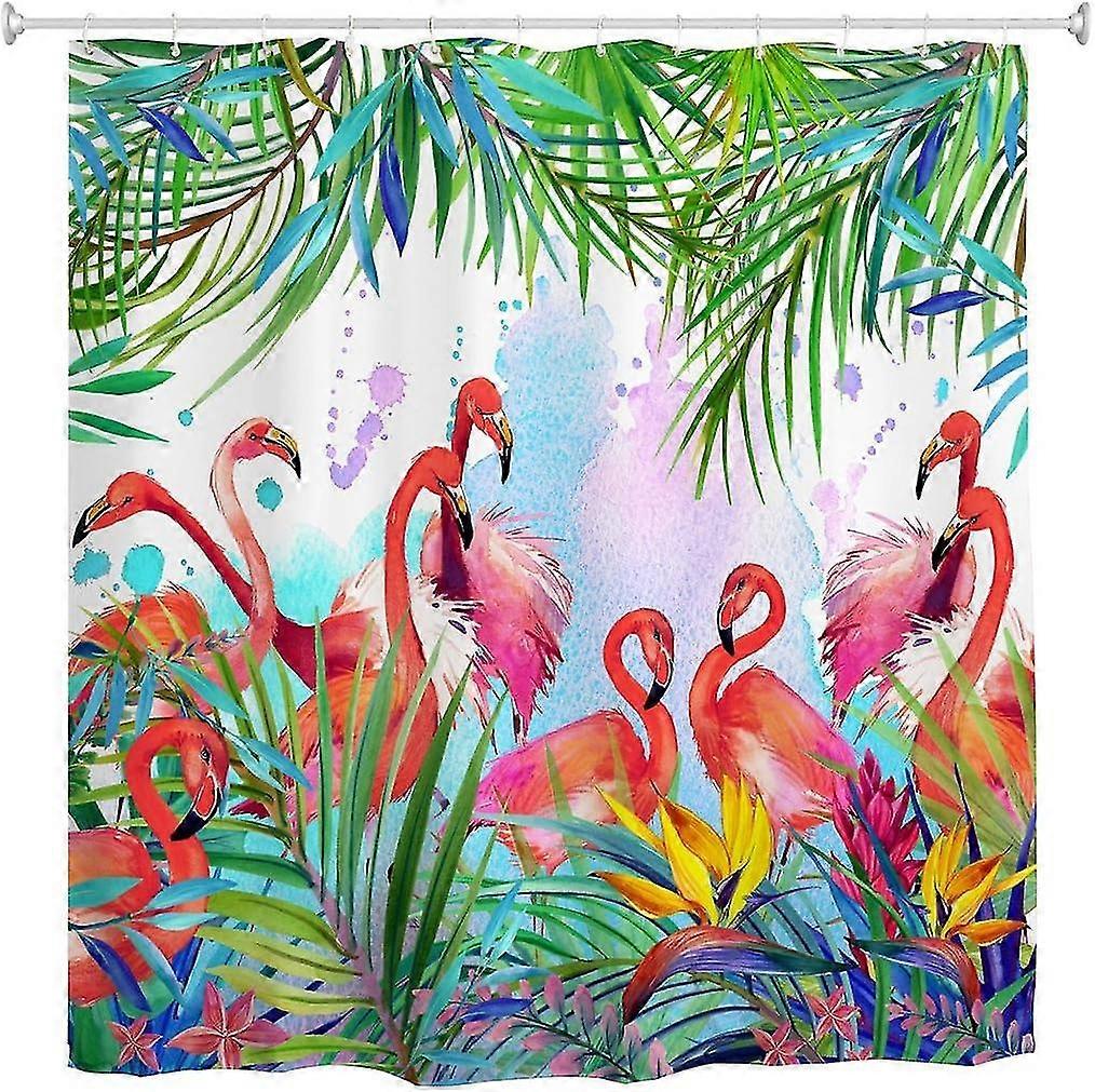 Flamingo Shower Curtain, Tropical Leaves and Flowers Waterproof Anti Mildew Fabric Bathroom Shower Curtains