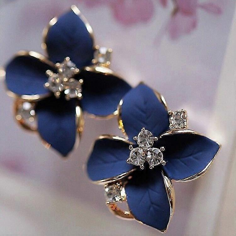 Flower Earrings, Blue Three-dimensional Frosted Ear Clip Earrings