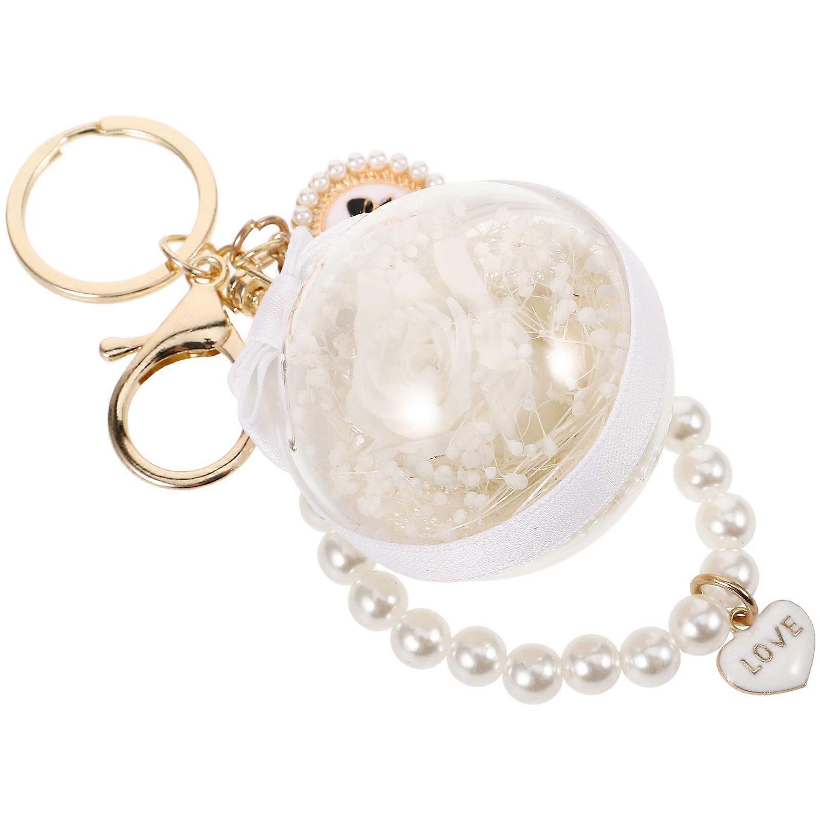 Flower Key Chain Bow Shape Keychain for Bags White Acrylic Rose Decoration 1Pcs