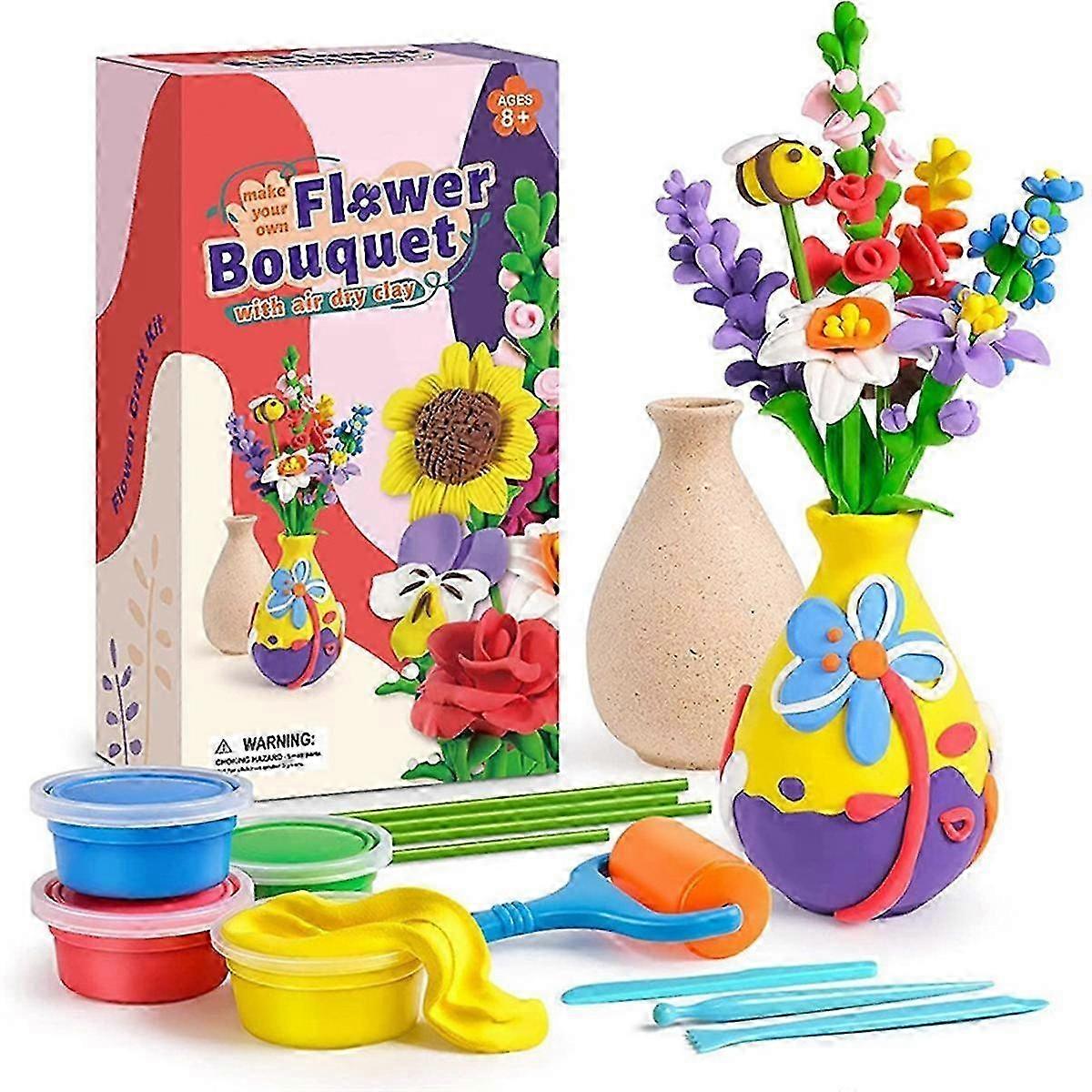 Flower Crafts ,Flower Bouquet Modeling Clay Kit , Arts and Crafts Air Dry Clay,For Girls Boys Ages