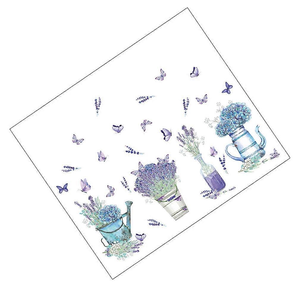 Flower Sticker Lavender Butterflies Wall Decal For Living .37X11.79X0.04inch Removable 1Set