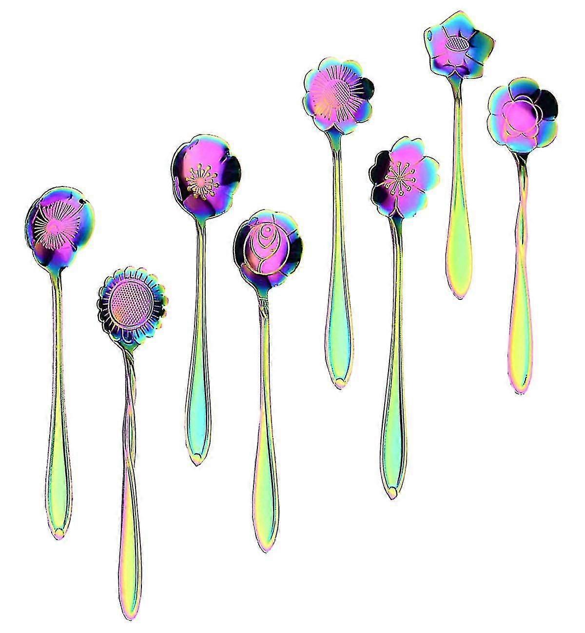 Flower Spoon Set, Rainbow Flower Teaspoons Set Of 8 Stainless Steel Dessert Spoons,colorful Tea Spoon For Coffee
