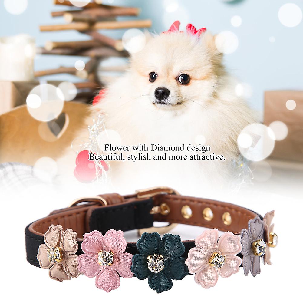 Flower Diamond Pet Collar Adjustable PU Leather 1.3x34cm Black