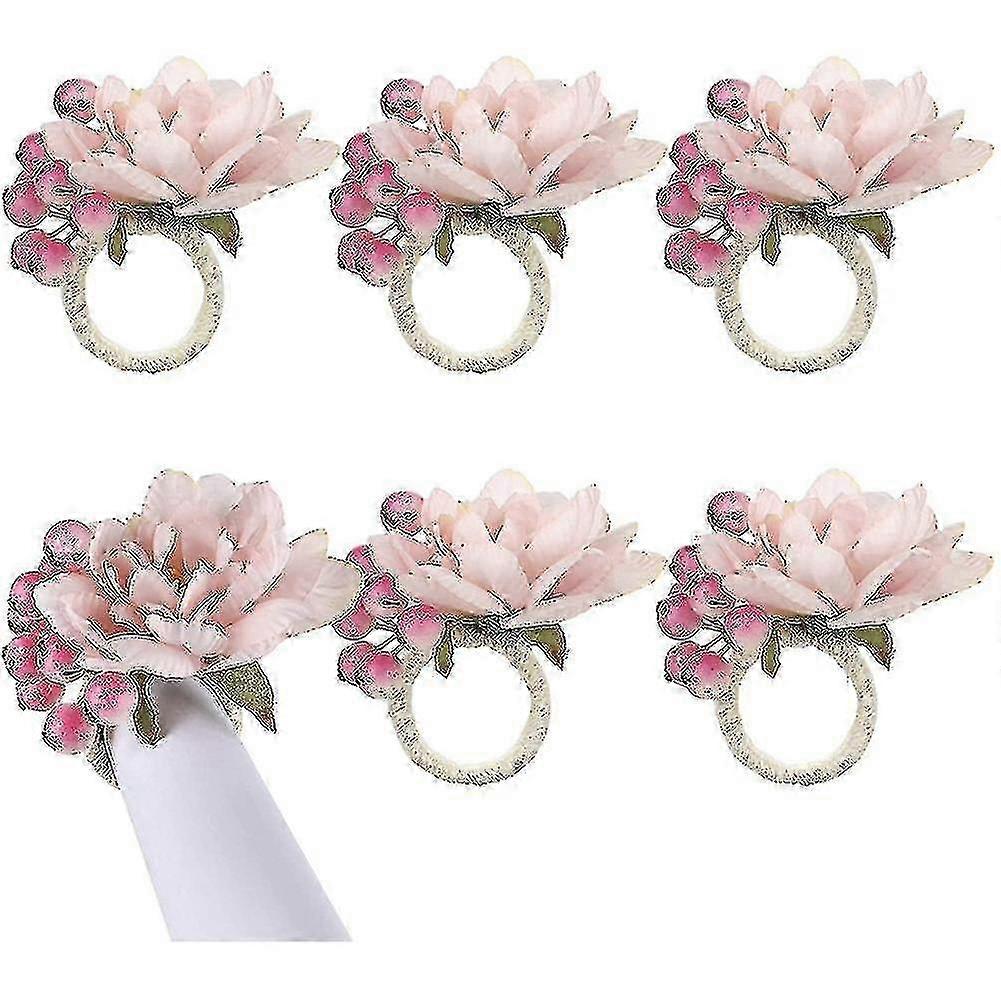 Flower Napkin Rings 6pcs, Napkin Rings Holder, Spring Floral Serviette Buckles Holder Table Decorat