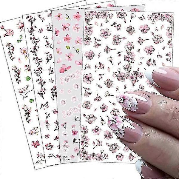Flower Nail Stickers Decals, 4 Sheets White Cherry Blossoms