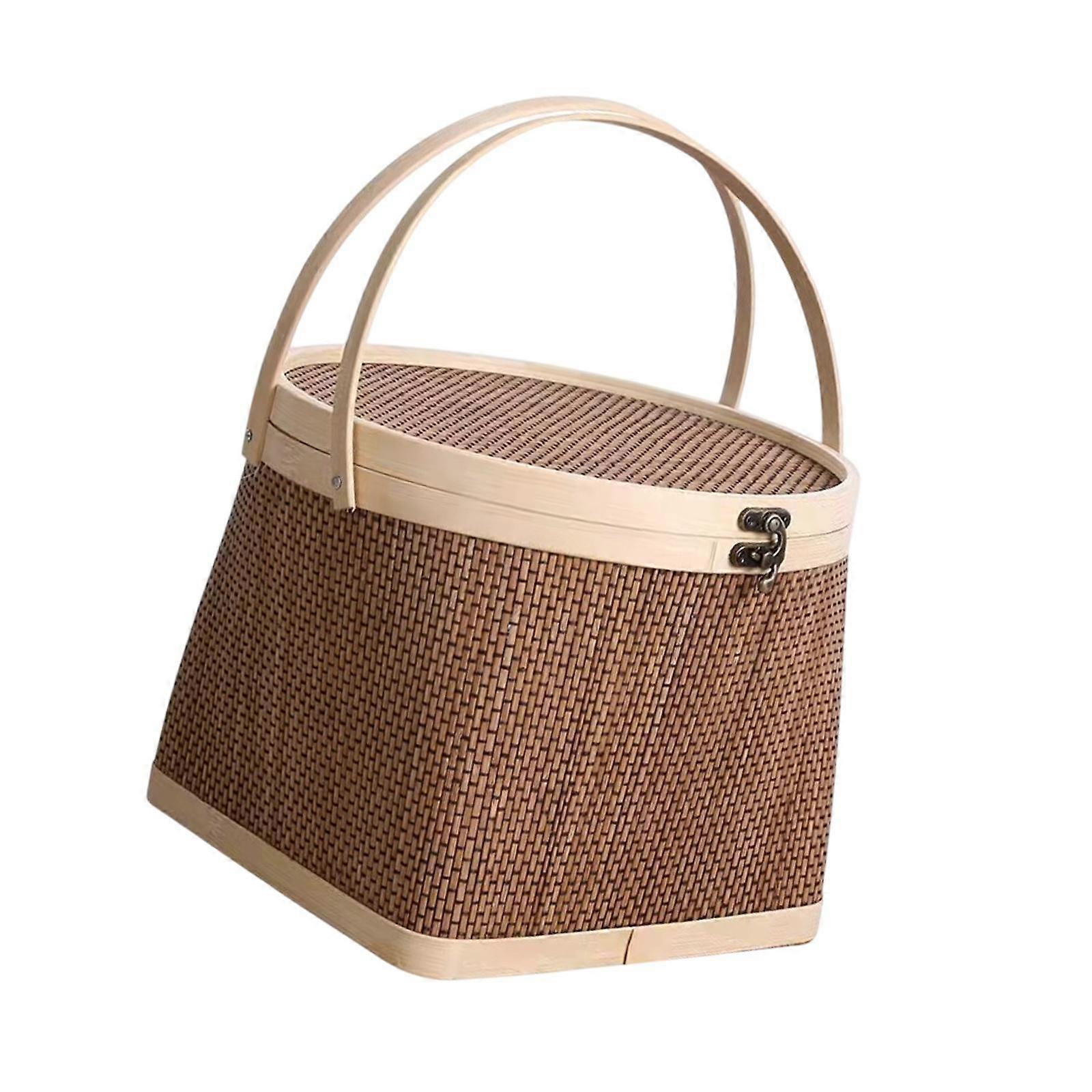 Flower Basket Food Storage Basket Lock Lid Egg Container Handwoven Bamboo Basket