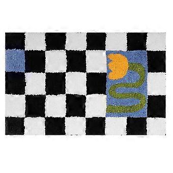 フラワーバスマット ソフトプラッシュ チェッカーボード グリッド ソフトフローラル バスルームカーペット ベッドサイドカーペット 装飾 滑り止めフロアマット E