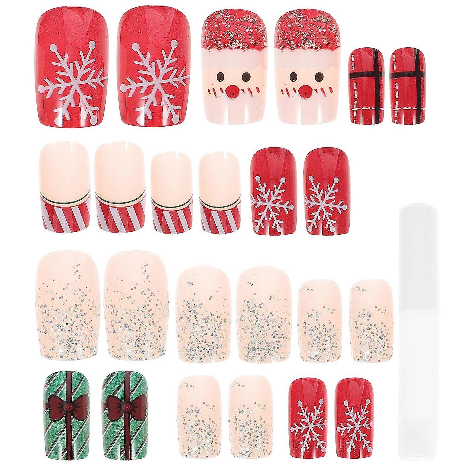 Flower Fake Nail 24Pcs Christmas Nail Art Sticker for Women Use
