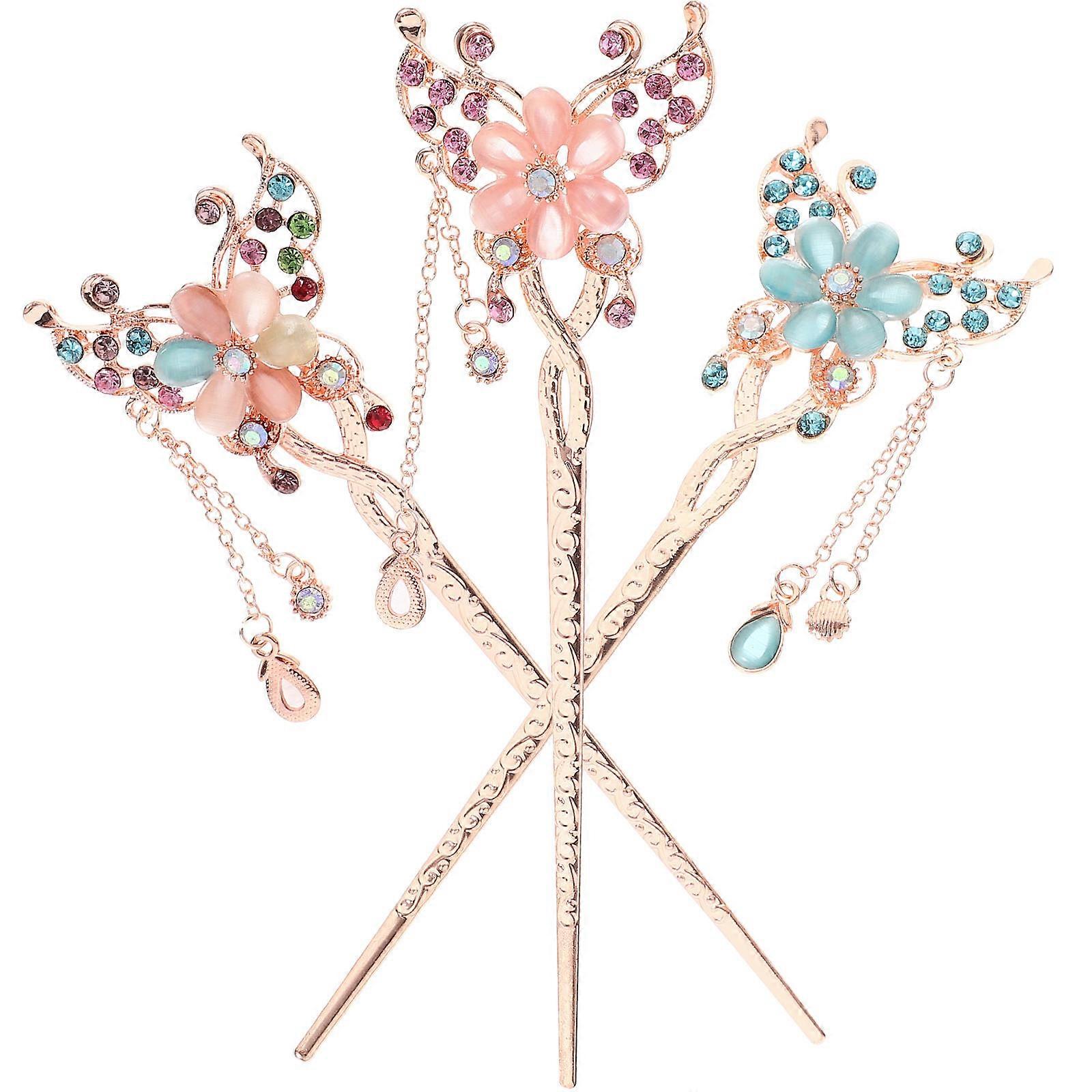 Flower Hair Stick Hair Styling Accessories for Decoration 3Pcs Alloy