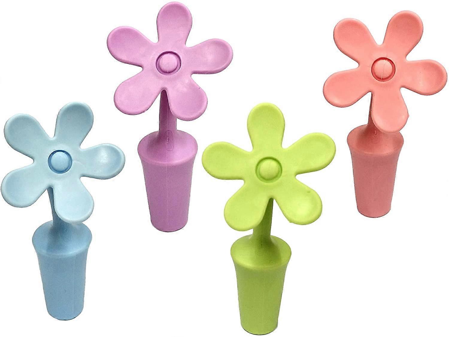 Flower Bottle Stoppers,Wine Stoppers, Silicone Bottle Stopper Sun flower Shape Wine Plug for Champagne, Beverage, Beer, Wine Stoppers (4 piece)