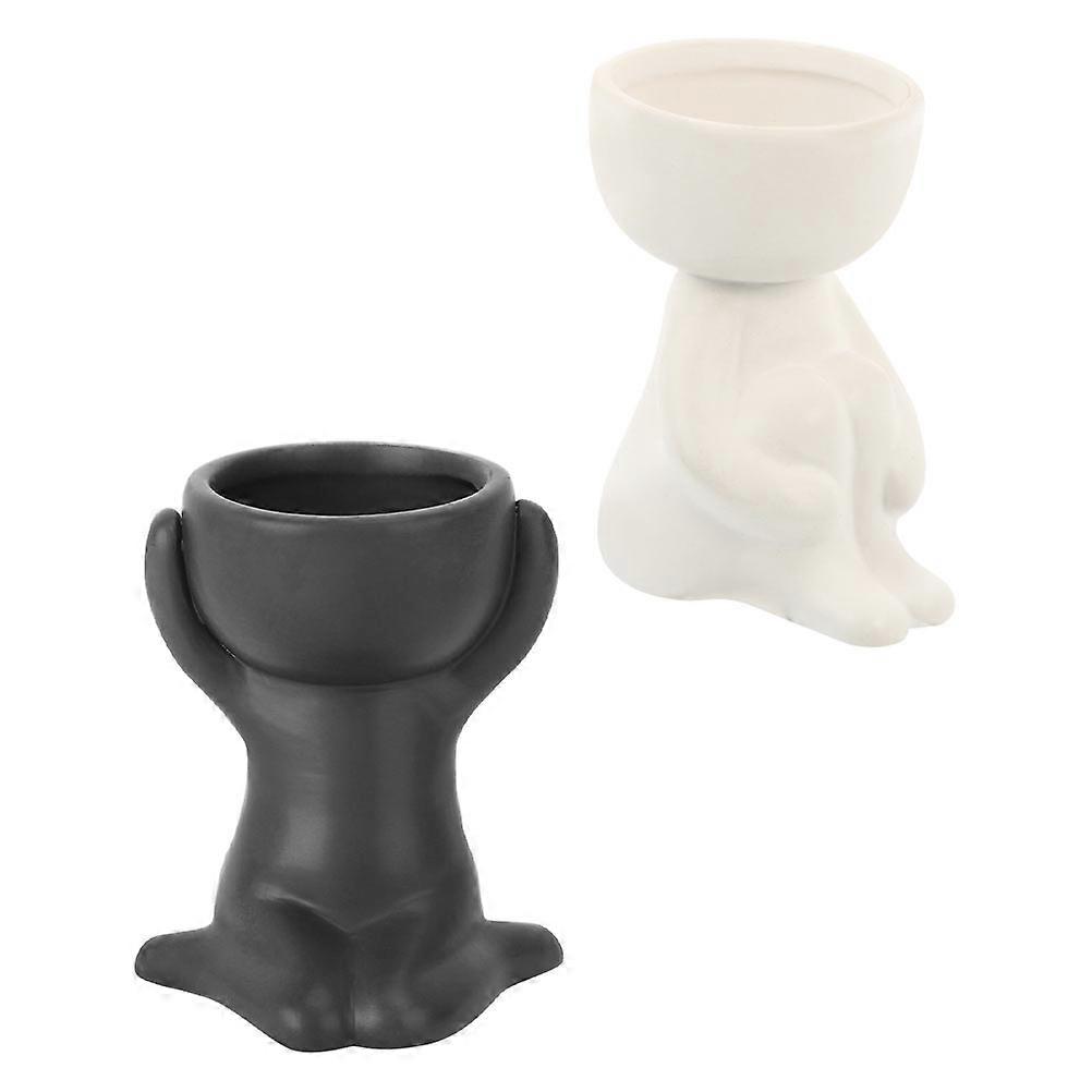 Flower Holders 2Pcs Black Ceramic Flower Containers For Living Room Bedroom And Kitchen Decorations 3.93x2.36x2.36in Durable