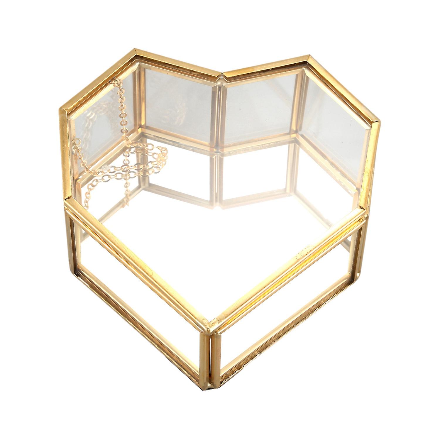 Flip Love Heart Shaped Geometric Glass Jewelry Box Glass Ring Box Exquisite Unique Wedding Jewelry