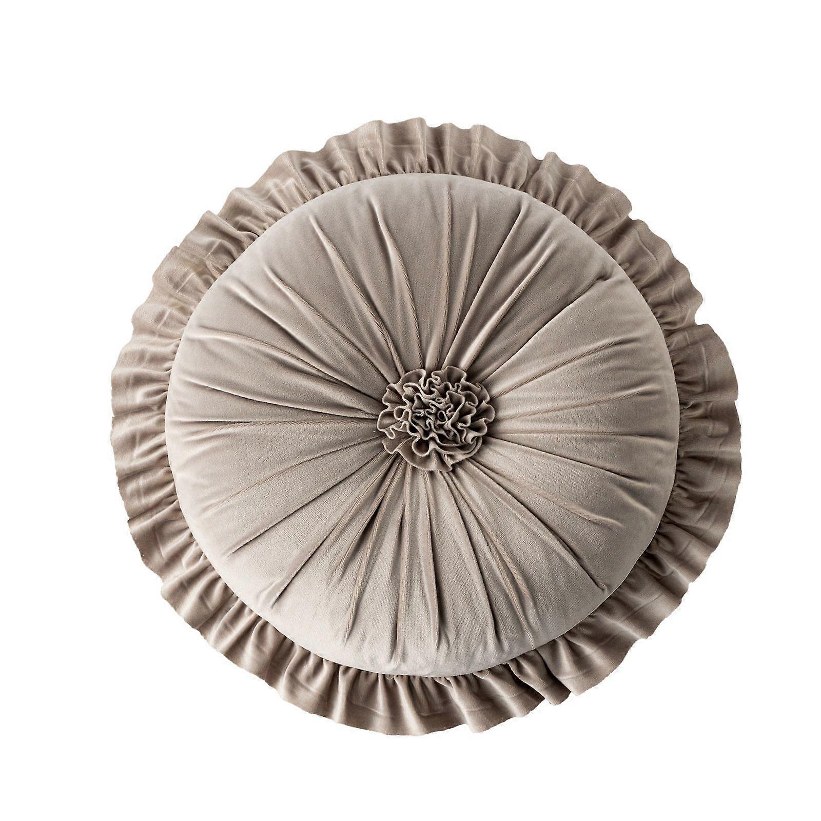 Round Throw Pillow with Ruffles, Pumkin Pleated Velvet Chair Cushion 3D Floral Decorative Floor Pillow for Sofa Bedroom Office Car
