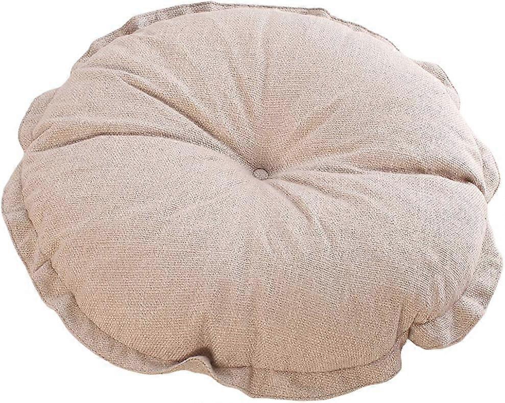 Boho Soft Round Floor Pillow Cushion with Ruffles, Cotton Linen Print Chair Pad Tatami for Meditation, Yoga, Living Room, Balcony (Beige,16"x16"x4")