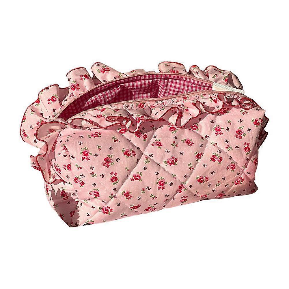 Ruffled Cosmetic Bag Toiletries Travel Skincare Organiser Portable Storage