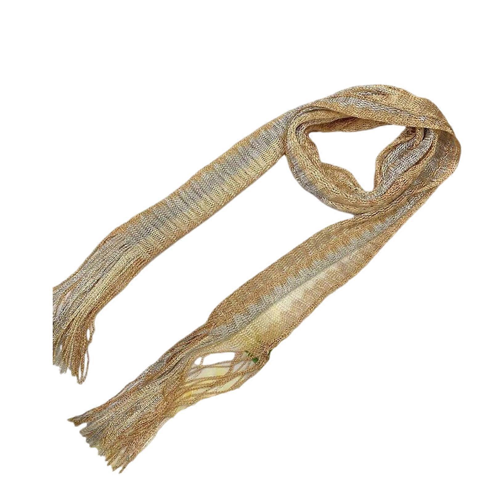Classical Striped Scarf With Fringes Designs Seethrough Neck Wear For Women Girl Dress Multiuse Narrow Scarf for Daily Gold