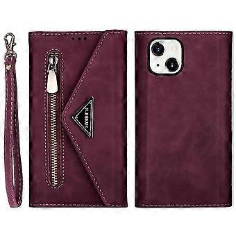 Full Protection Leather Zipper Wallet Design Skin Feeling Phone Case with Stand and Strap for iPhone
