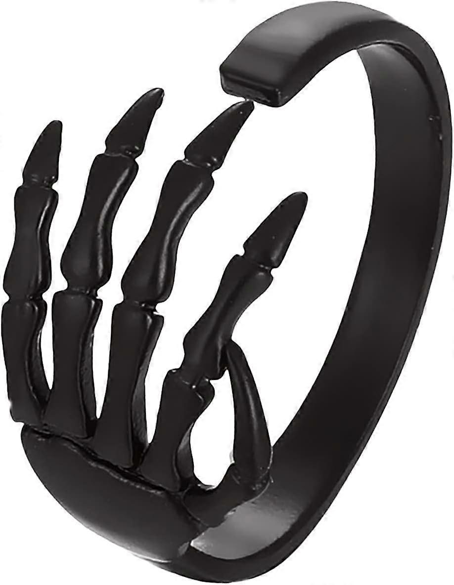 Full Finger Ring Punk Wristband Skull Fingers Hand Bracelet Skull Finger Skeleton Joint Bracelet Knuckle Full Ring for Halloween Accessories (5pcs,bla