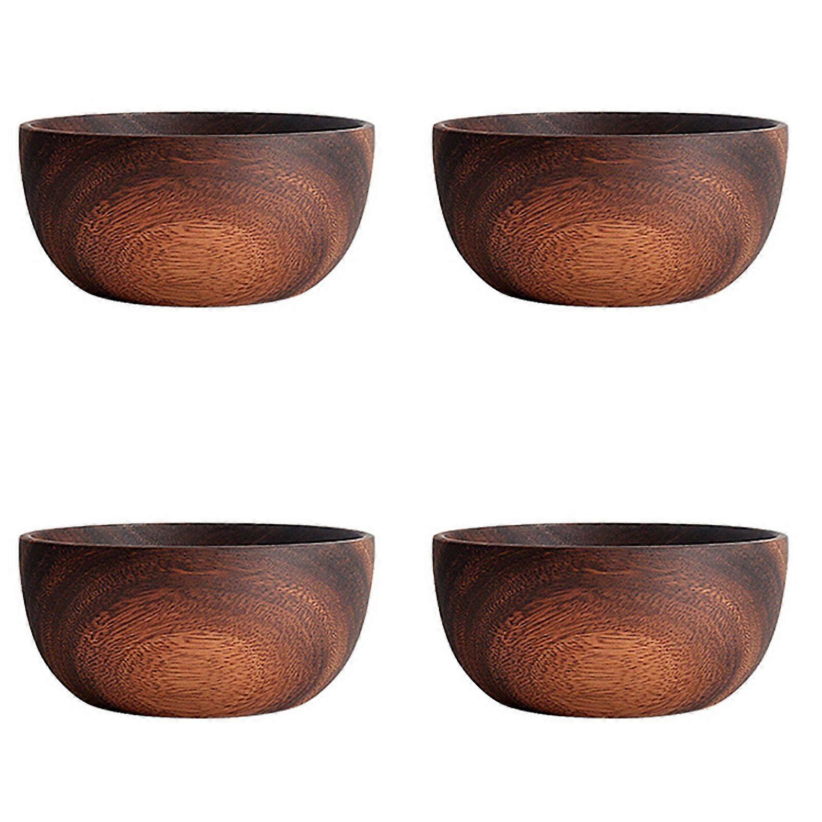 4X Wood for Fruits, Salads and Noodle, Salad Wooden Bowl 5.1X2.4Inch