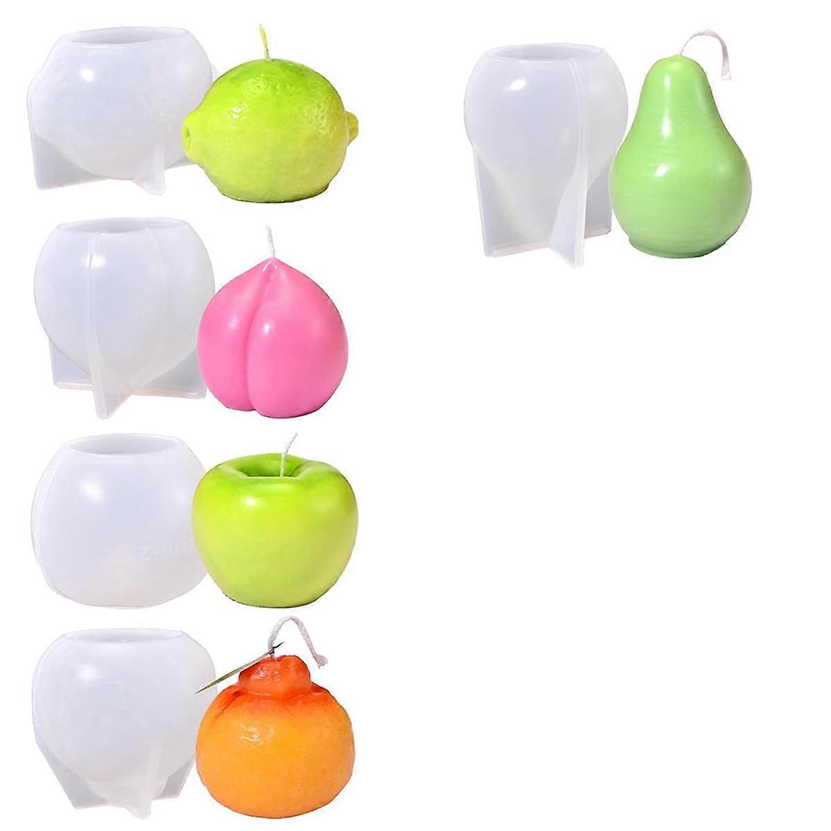 5Pcs Fruit Candle Molds Set, 3D , Pear, Orange, Lemon & Peach Silicone Molds for Candle Making DIY Candle Soap