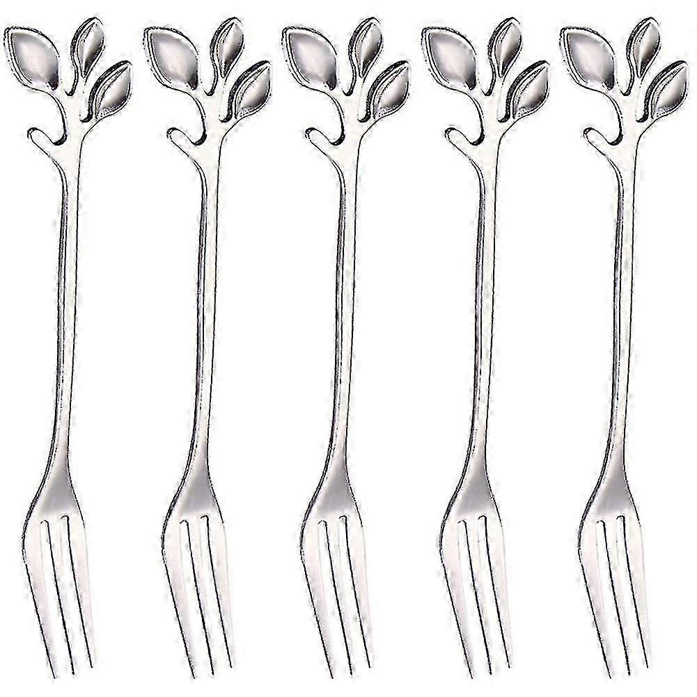 Leaf-Shaped Stainless Steel Dessert Fork for Fruit Salad Meat Kitchen Silver