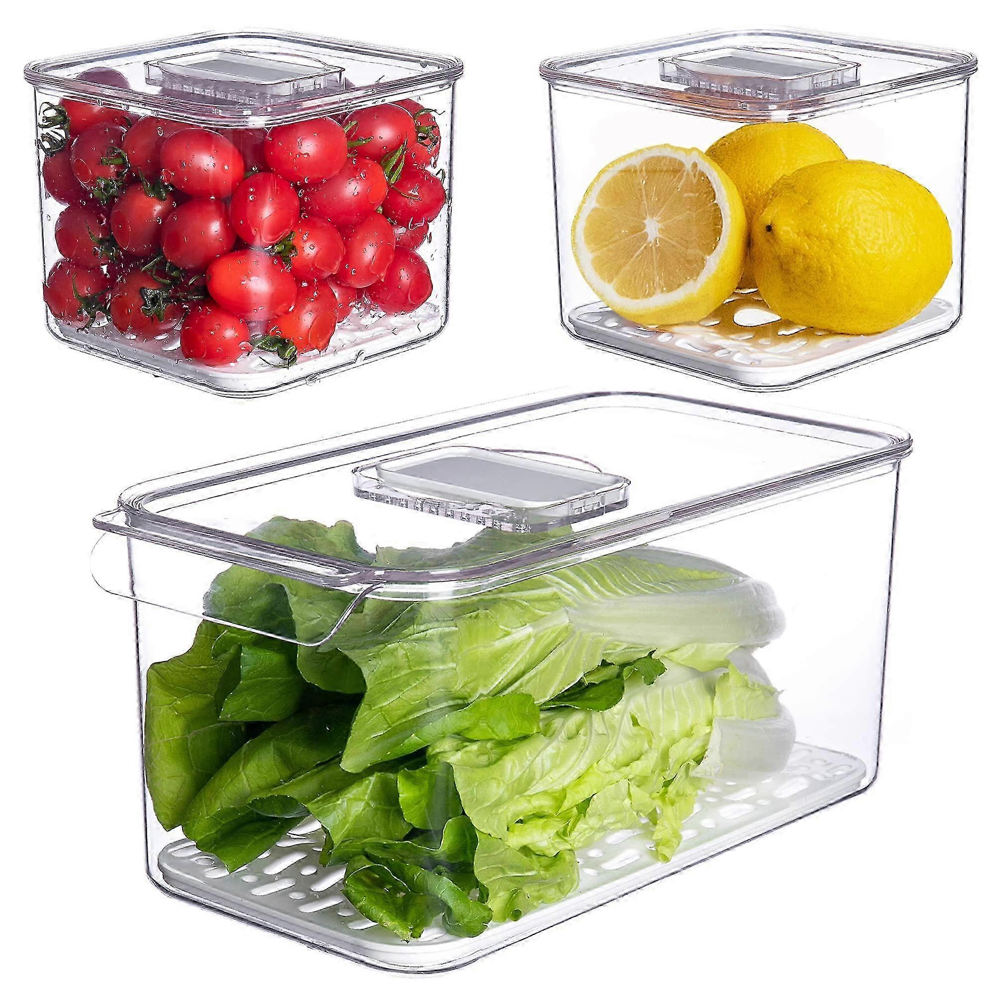 Fresh Refrigerator Food Storage Containers for Fruits & Lettuce, BPA-Free, 3-Pack
