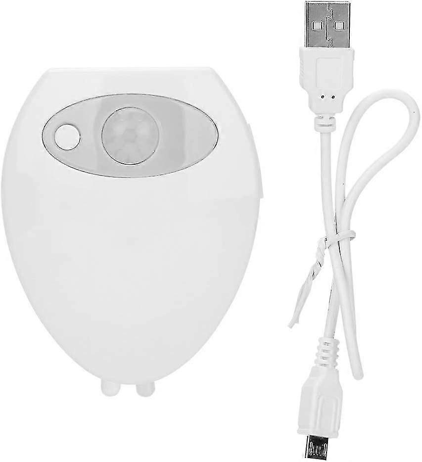 Spec:Condition: 100% Brand NewItem Type: Toilet LightMaterial: ABS+PC Color: As the picture showSize: About 5.28x6.48cm/2.08x2.55inWeight: About .62g/2.2oz Light source: RGB+UV LEDVoltage: 3.7VPower: 1WBattery: 200mAh polymer battery (included)Function: Human body induction, USB charging\\colorful changeDetection distance: 1~3m/3.3~9.8ftWaterproof rating: IP65 Press and hold the switch for three seconds to feel the person begin to change color, and the seven colors rotate (16 colors for about 120 seconds, each color is randomly selected for 7 seconds, after 120 seconds, the purple light is sterilized for 120 seconds, then does not light up Press the switch key in the middle to fix the current color, then press to continue nuer to change color, press and hold for three seconds to turn off).Package List:1 x Data Cable1 x Lamp toiletFeaturesLED toilet light, toilet motion sensor with 16 different light colors, it is easier for you to find the toilet. This indicates the location of the toilet.Practical AccessoriesEnergy saving LED toilet light and smart night light necessary for your home. You can buy and use with confidence.Easy to AdjustThe arm of the toilet night light is flexible and can be bent to fit any size toilet bowl .Excellent DecorationNot only a led night light, but also a decoration for your home toilet. Please choose to purchase based on actual needs.Excellent PerformanceToilet light, make your bathroom accessible, smart and considerate through human sensor. Bring you a comfortable and convenient experience.