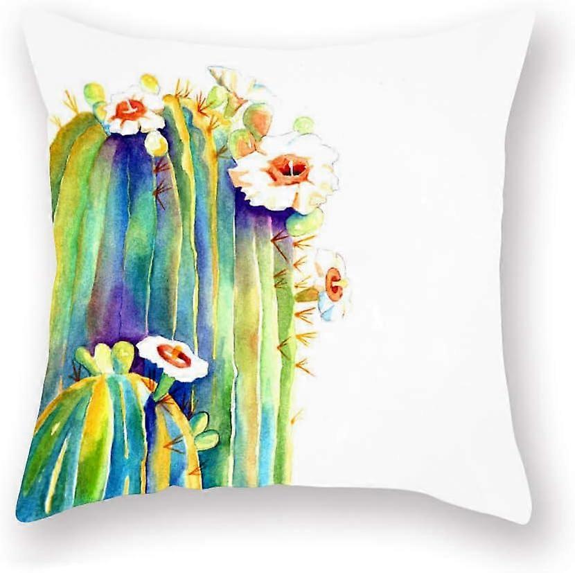 Fresh Summer Style Pillow Cover Super Soft Green Tropical Plant Cactus Flower Decorative Pillow Case Square Cushion Case Cover 18x18 Inch (ST 09)