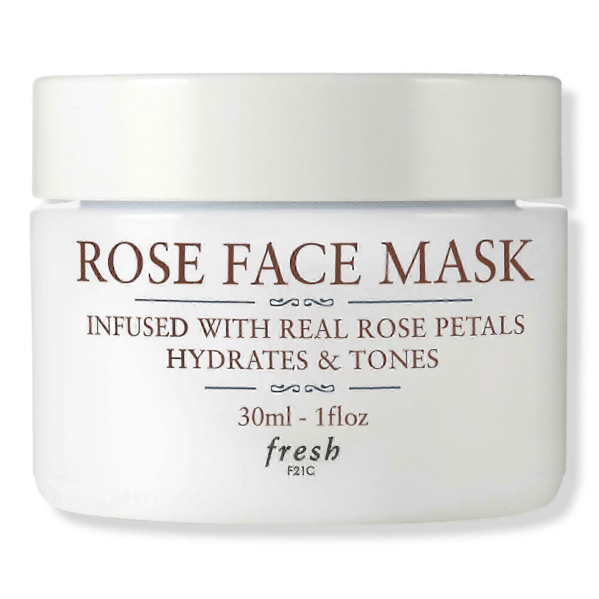 Fresh Rose Face Mask is an instantly hydrating silky gel with real rose petals that gently soothes and tones with a plumping effect.BenefitsThis fresh classic face mask drenches skin with rosewater, cucumber extract, and aloe vera gel to instantly cool and calm, while a blend of teas helps to brighten.Porphyridium cruentum, a hydrating microalgae extract, maintains moisture levels for soft, supple skin.Plus, it smells like fresh roses.100% felt skin was supple and healthy looking*93% felt their skin was soothed and hydrated*93% noticed a cooling and calming sensation*90% said it nourished and visibly improved the appearance of their skin**self-assessment, 30 subjects, 4 weeksKey IngredientsRosewater is notable for its soothing and toning properties.Cucumber extract and aloe vera gel help to immediately calm and cool the complexion.Porphyridium cruentum, a hydrating algae extract, helps retain moisture.A blend of green, white, and rooibos teas helps to brighten. Suggested Use: After cleansing with Soy Face Cleanser, apply a generous amount to damp skin, avoiding the eye area. Leave on for 5-10 minutes and rinse. (Plus, it's gentle enough for daily use