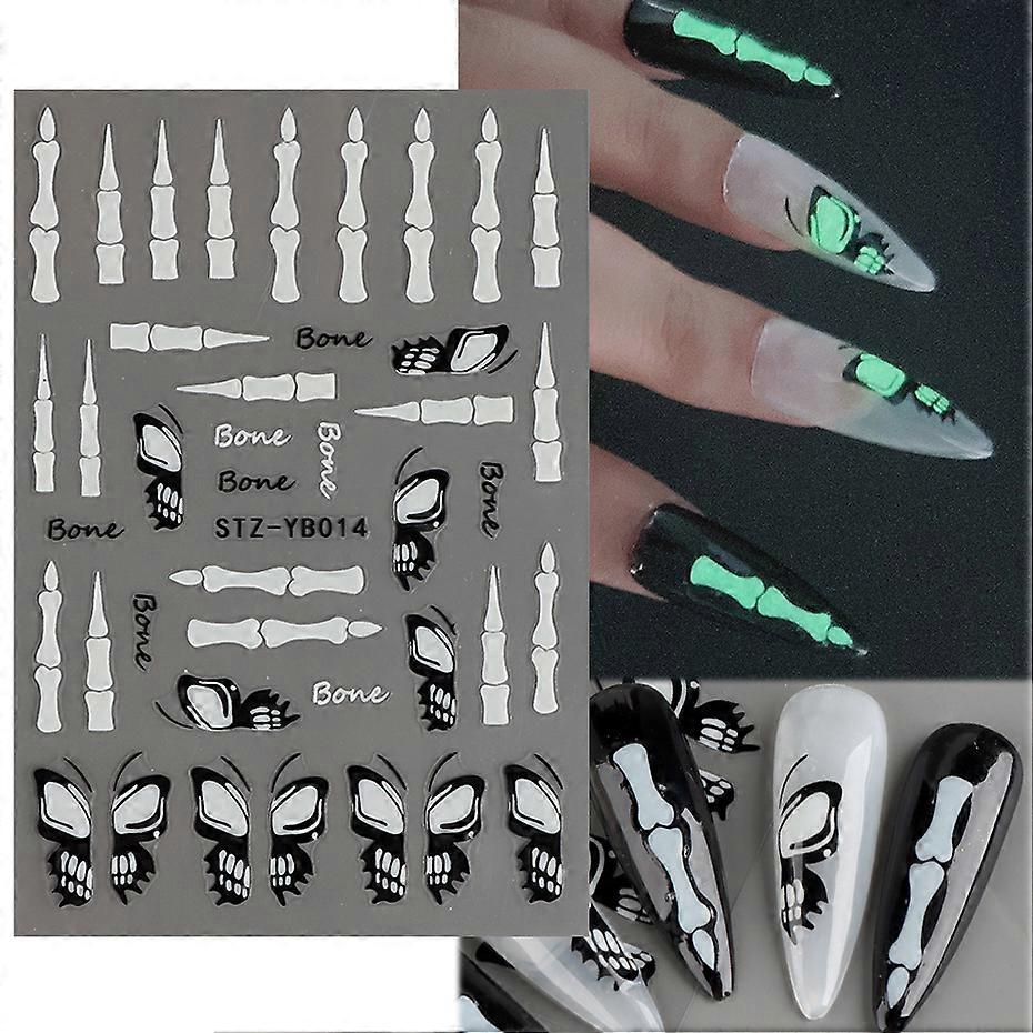 French Nail Stencil Stickers,1 Sheets Halloween Manicure Stickers INS Butterfly Skull Bundy Cool Luminous
