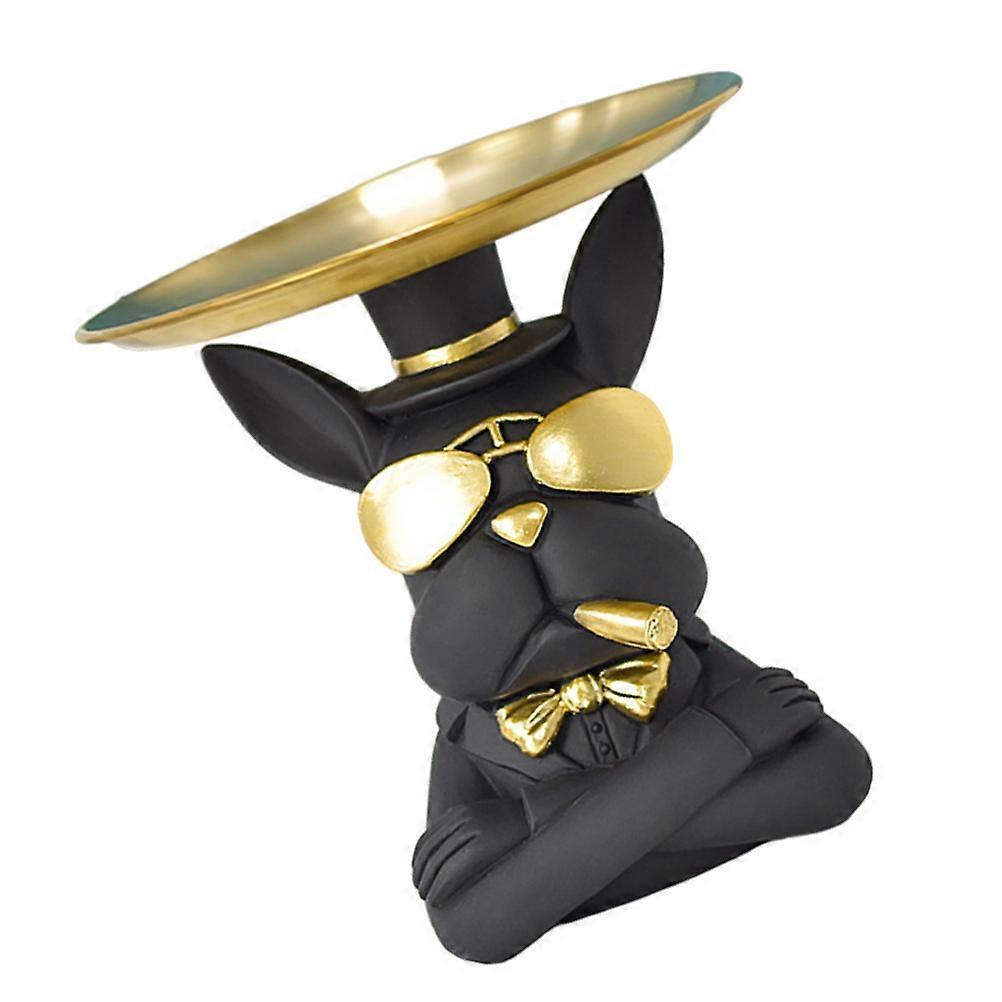French Bulldog Desktop Tray, Decorative Home Storage Ornament, Smooth Texture, Elegant Black Accent for Living Room or Entryway, Stylish Interior