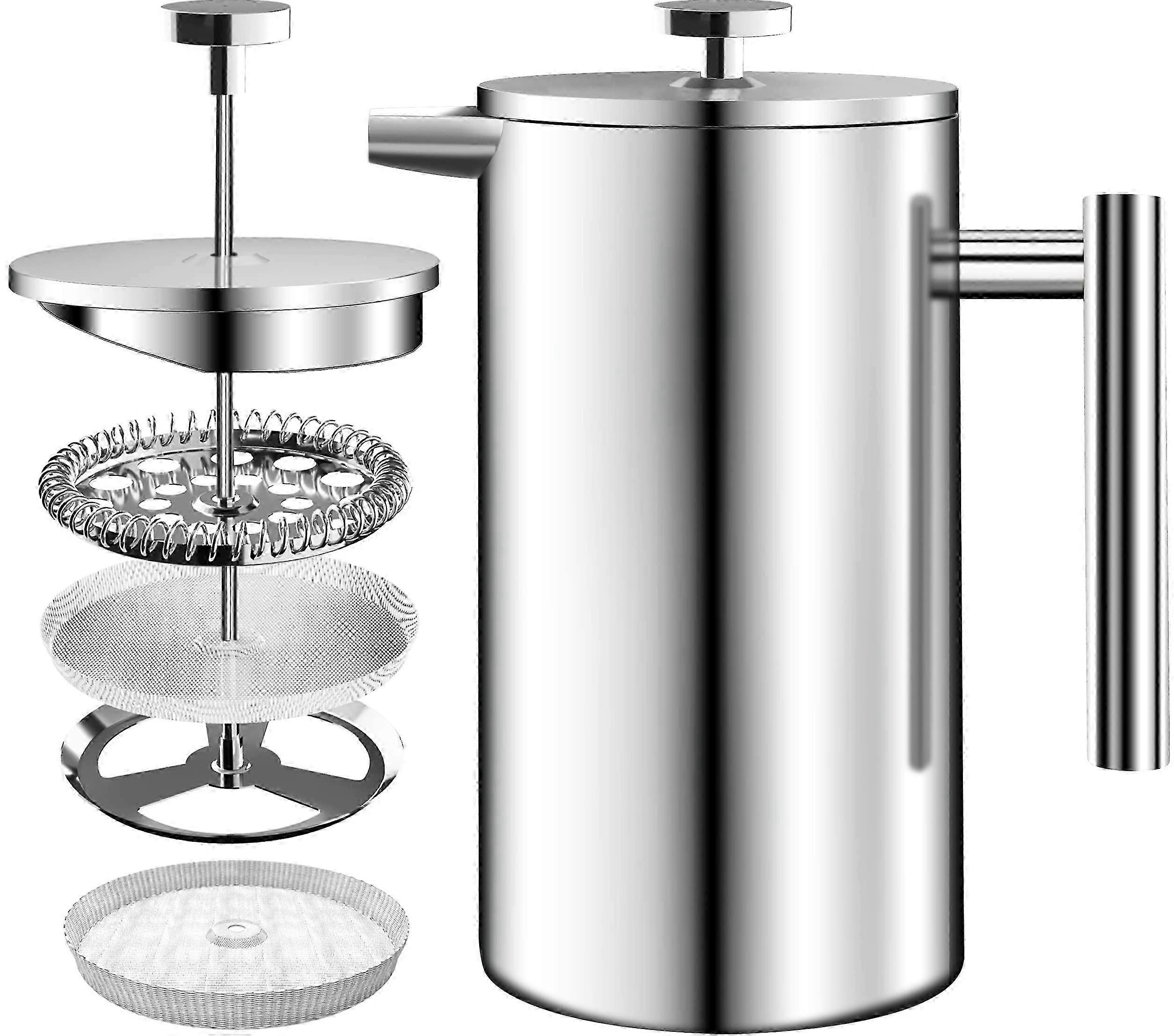 French Press Coffee Maker with Triple Filters, Heat-Resistant Glass & Steel Design