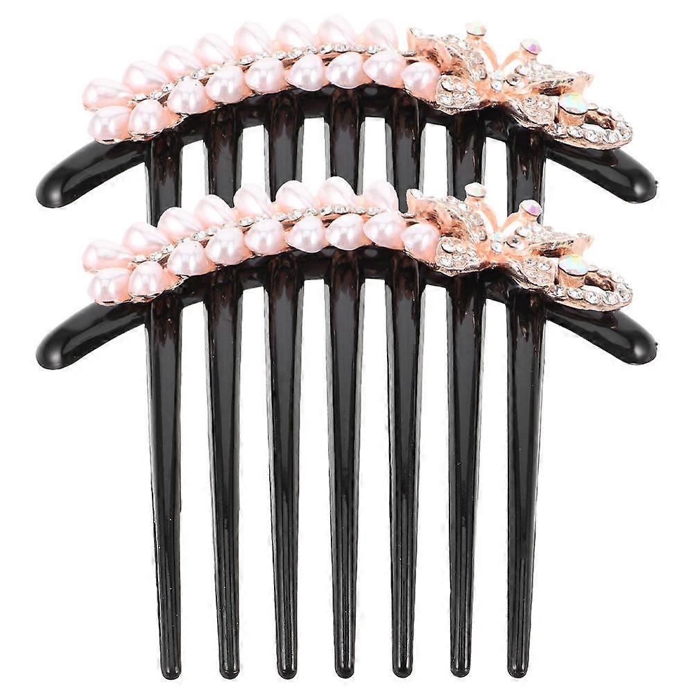 French Hair Comb Simulated Pearl Hair Accessory Wide Application Women Side Comb Multi .30X9.00X1.80CM Universal Appeal 2Pcs