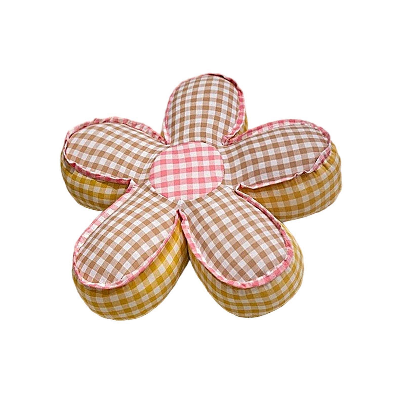 Floor Cushion Floral Pattern Pillow Soft Cotton Blend Covers For Home Nursery Office Chair Seat Pad Slip Proof Brown and yellow