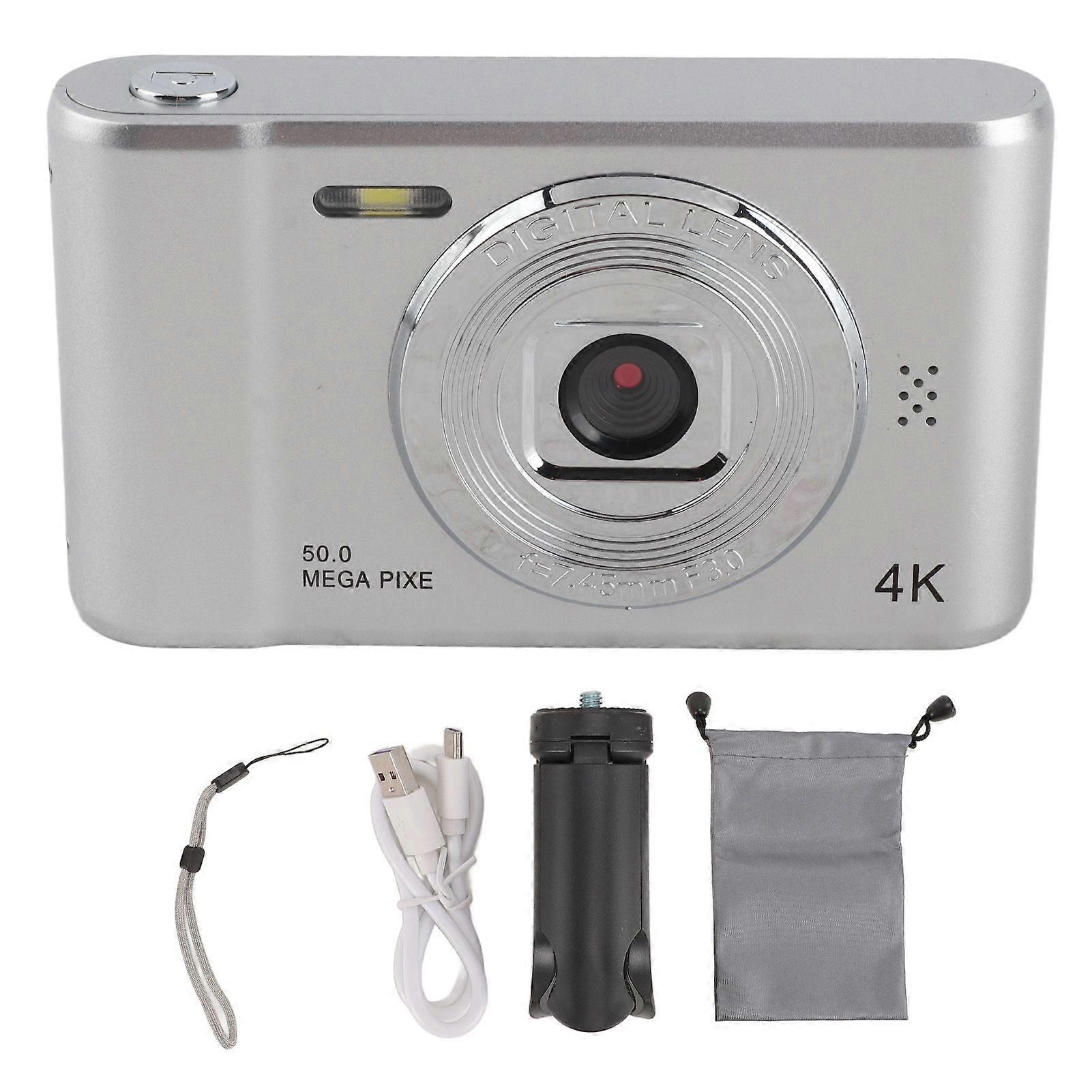 Feature:1. 50MP HD Photography: Equipped with front and rear dual cameras capable of capturing 50MP photos and HD video output, delivering ultra clear images with rich details and accurate color reproduction, while supporting multiple digital zoom levels.2. One Click Shooting: Features automatic light sensing, adaptive shooting modes, electronic image stabilization, and user friendly operating with no complex settings required, simply press the shutter key to effortlessly shoot wonderful photos, great for beginners.3. High Definition Screen: Utilizes a clear 2.4 inch TFT display screen that is scratch proof and long lasting, providing a vivid display of captured content even in sunlight, ensuring clear visuals and convenient operating.4. Versatile Functionality: Supports automatic focusing, beauty mode, multiple color filters, and colorful frames, ensuring no memorable life moments are missed with this feature packed compact camera.5. Diverse Application Scenarios: Long battery life and straightforward charging make this digital camera suitable for various occasions such as travel, social gatherings, graduations, weddings, and milestone recordings.6. Compact and Adorable: Despite its powerful features, this digital camera remains lightweight, slim, and compact, enabling single handed use and easy pocket storage, making it a delightful gift option for friends and family.Specification:Item Type: Digital CameraMaterial: ABSFile Format: JPG.AVIImage Resolution: 50M (Maximum)Aspect Ratio: 16:9Auto White Balance: SupportedBattery Type: Lithium Ion BatteryBattery Capacity: 800mAh (With Built in Battery Shipped)Storage Support: Support up to 64GB Small Memory Card (Memory Card Not Included)Fill Light: SupportedCharging Interface: Type CDisplay Screen: 2.4 Inch TFT Screen (0.1 Inch Error)Wireless Fidelity Connection: Not SupportedLanguage Type: English, Traditional Chinese, Simplified Chinese, Russian, Japanese, French, German, Korean, Portuguese, Spanish, etc..Package List:1 x Camera1 x Tripod1 x Carrying Bag1 x Wrist Strap1 x Charging Cable1 x User ManualNote:The 4K on the body is only for appearance design, does not represent any parameter information.