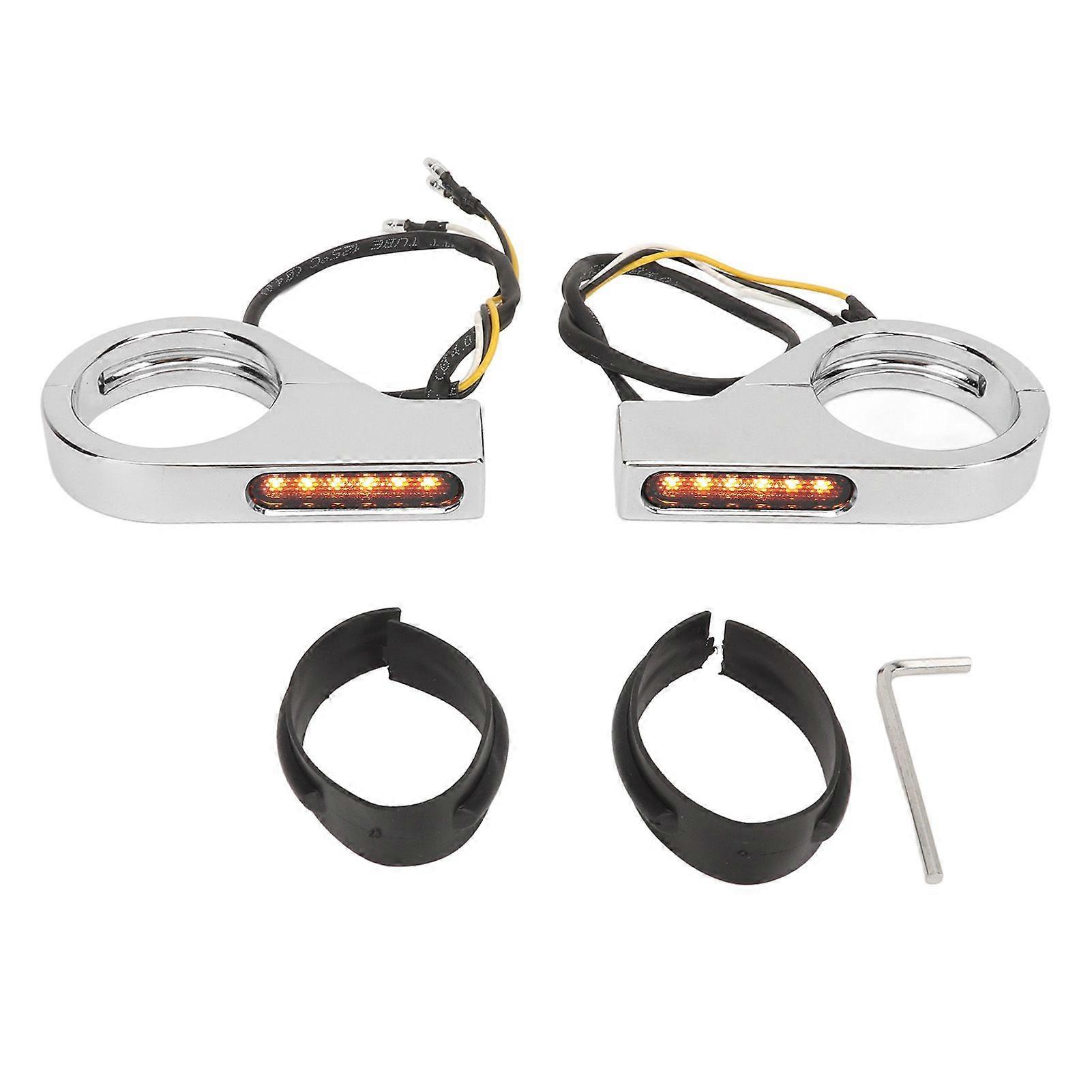 Front Fork LED Turn Signal Light High Brightness Stability Fork Clamp Indicators Lights for 41MM Fork Silver Plated Shell