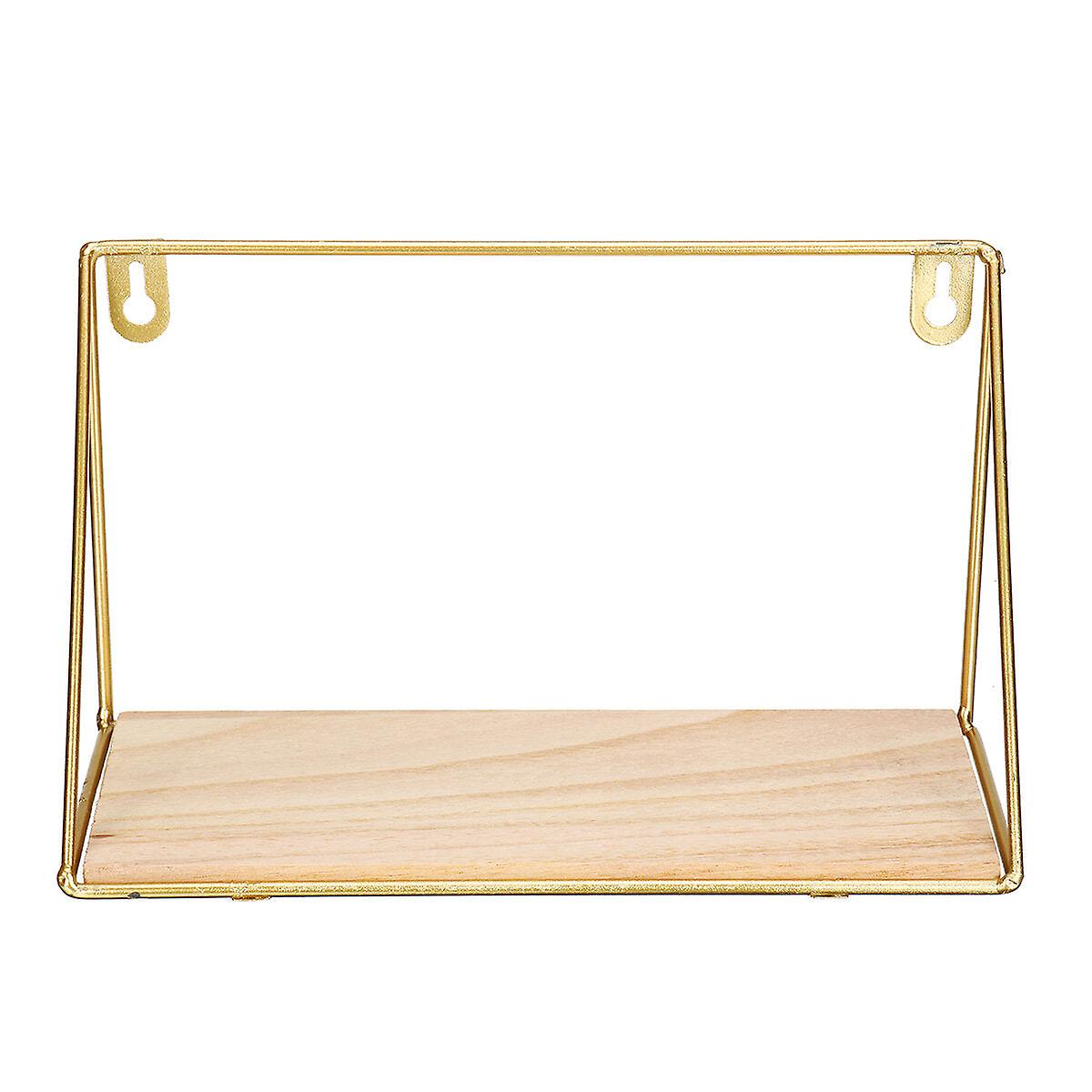 Feature: 1. Wall-mounted iron storage shelf, more convenient and practical.  2. Perfect for storing and displaying a variety of household, office or retail items.  3. Exquisite style, fashion,interesting taste, convenient storage.  4. It can be hung on the wall, or it can be placed on the table, inside the cabinet.     Specification: Product Name: Iron Wall Shelf.  Size: L:14.5x10.5x34.5cm/5.7x4.1x13.6in.  S:14.5x10.5x25cm/5.7x4.1x9.8in.  Color: Black/Golden.  Material: Metal & Wood.     Note: 1. Due to the different monitor and light effect,the actual color maybe a slight different from the picture color.  2. Please allow 1-3 cm differs due to manual measurement.     Package Included: 1 X Iron Wall Shelf