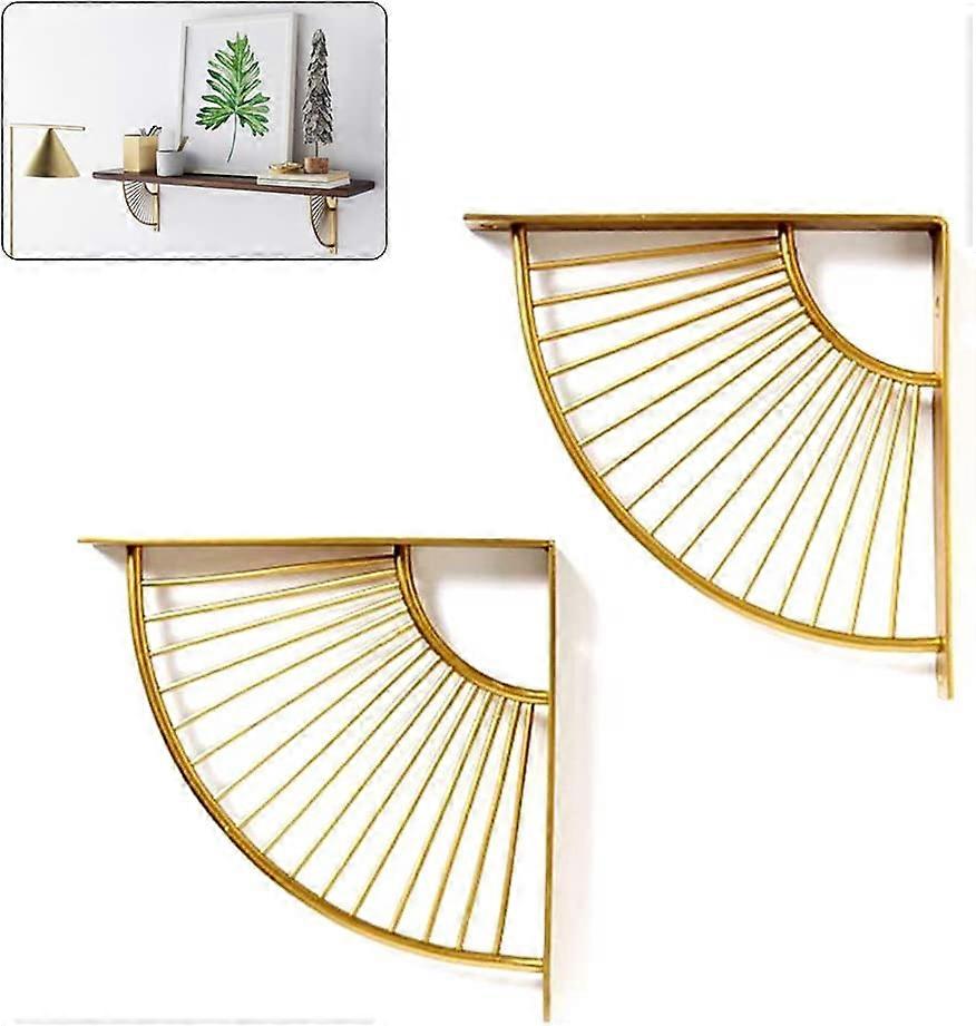 Floating Metal Golden Fan Shaped Triangle Shelf Bracket,Set of 2 Hanging Shelving Wall Corner Bracket for Restaurant/Office/Home Decoration (20/7.9in)