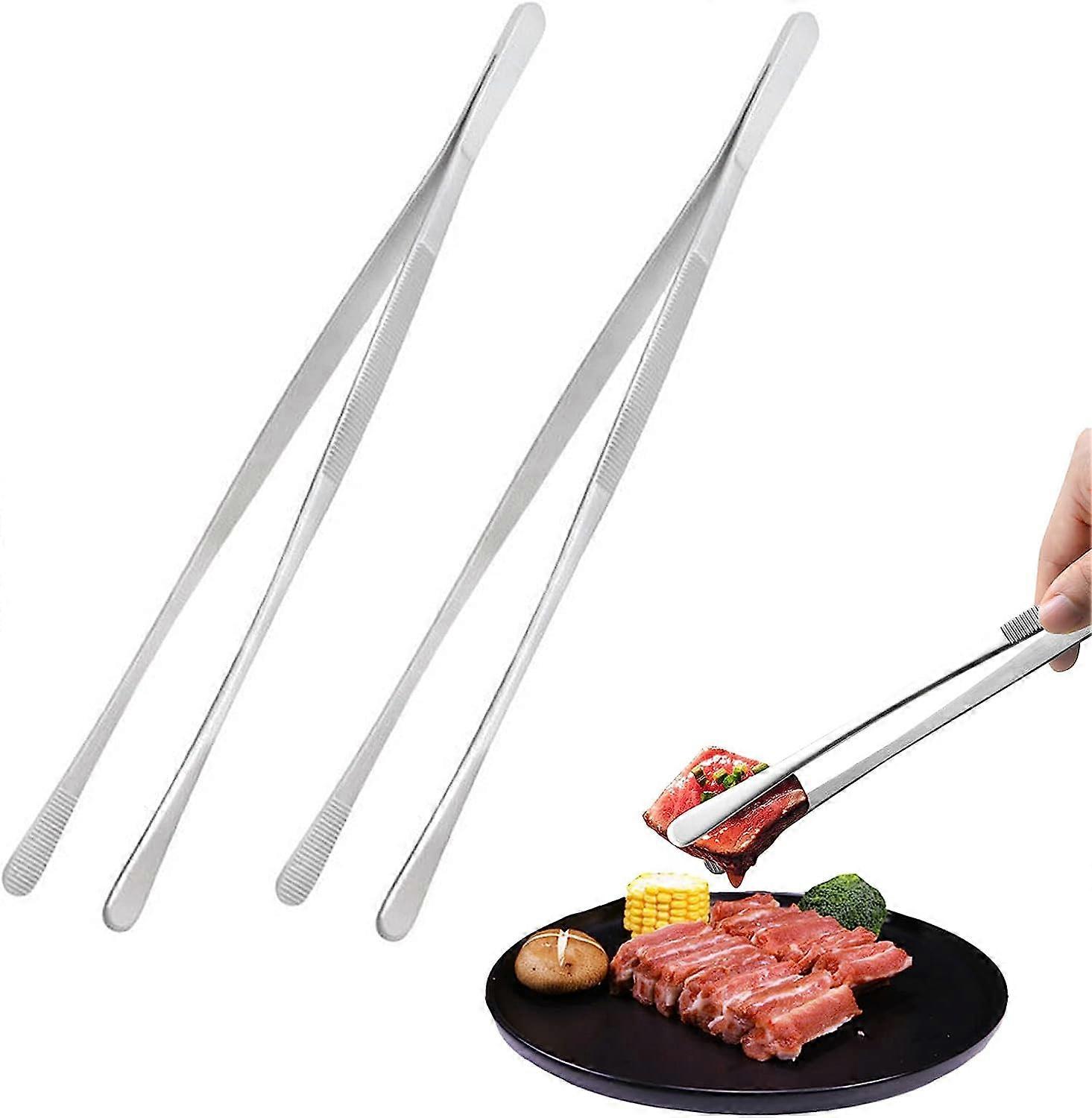 Food Tweezers 12 Inch Extra Long Tweezers, Metal Tongs Stainless Steel Kitchen Food Tong Bread Clip Pastry Clamp Barbecue Kitchen Tongs for Cooking Se