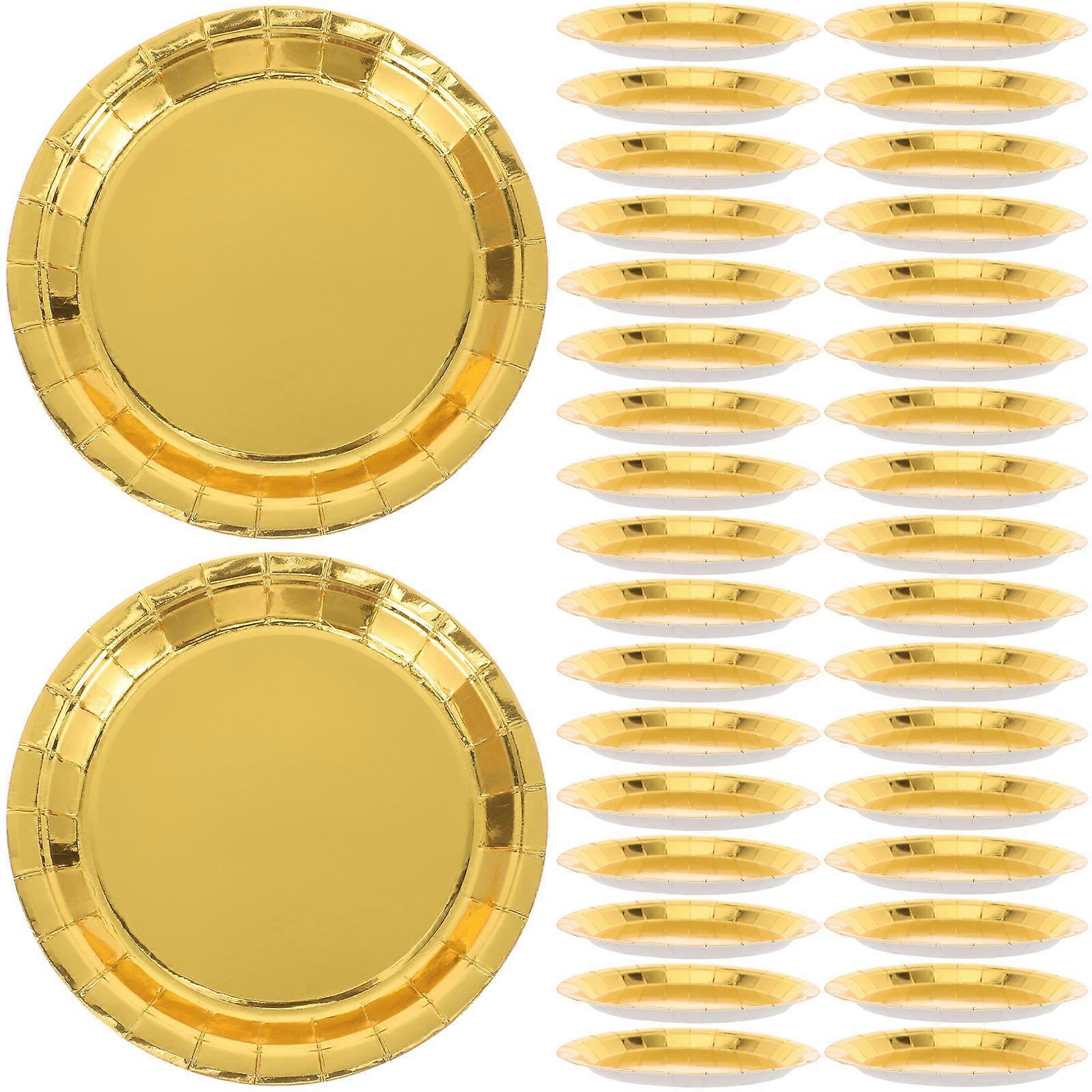 Food Plate Multi-Function Paper Plates Round Shape Household Dinner Plates Golden 17.50X17.50X0.10CM Food Serving 80Pcs